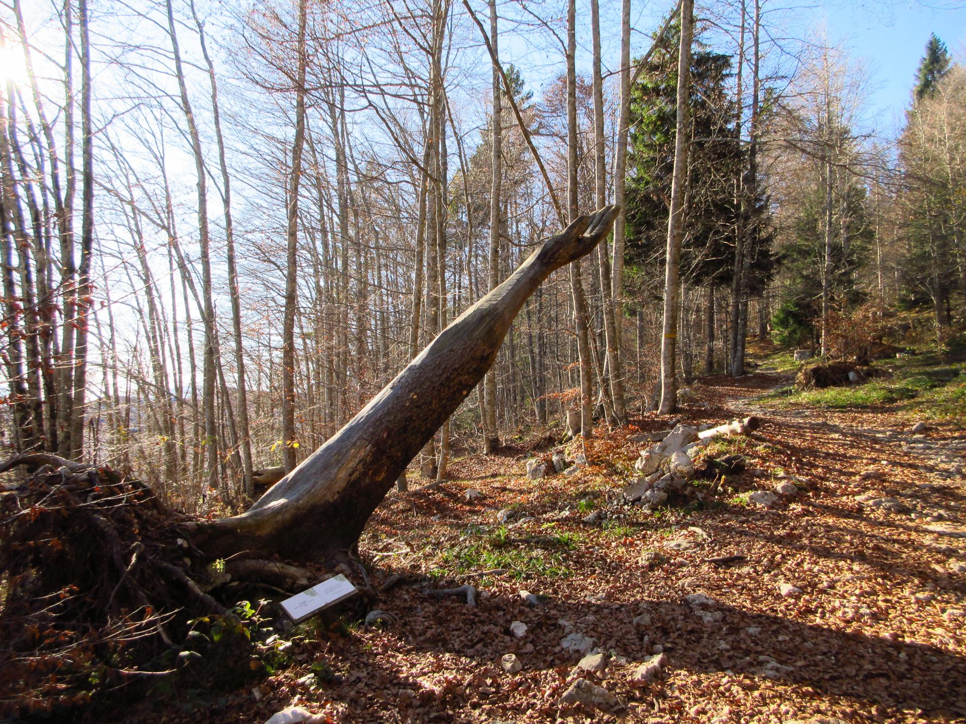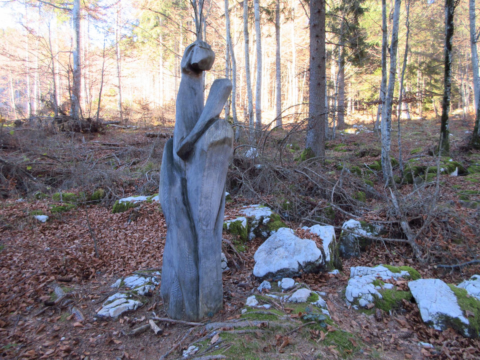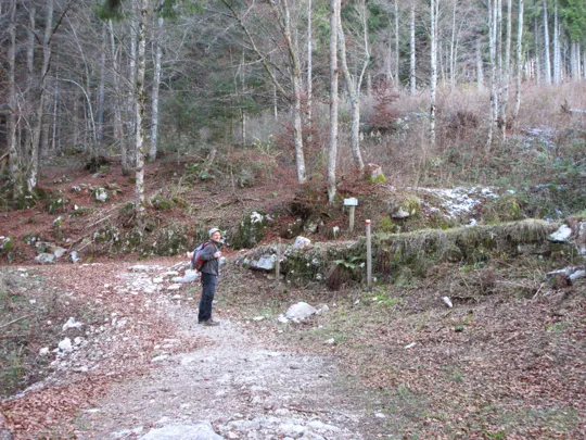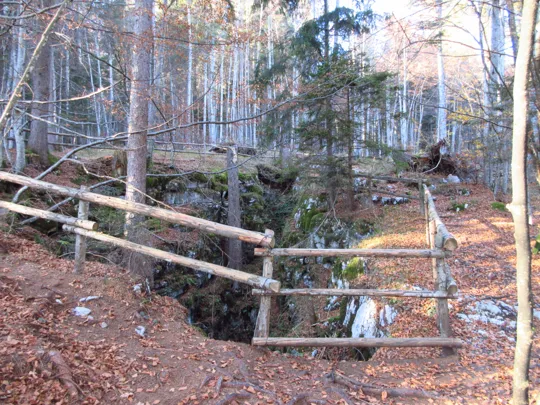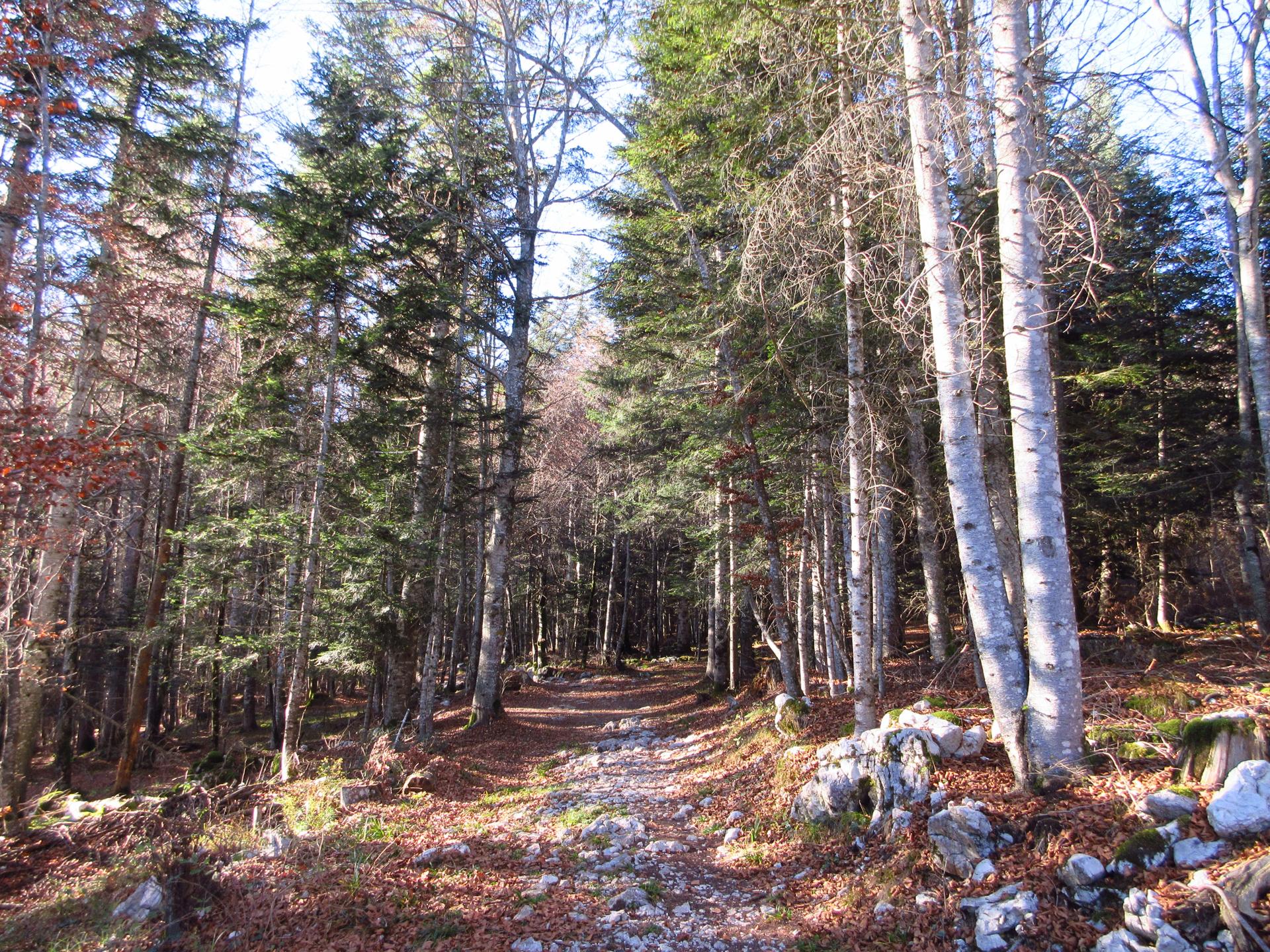 Si continua il sentiero in discesa nel bosco fino a trovare una tabella che indica a sinistra per il Buso del Taghelok.