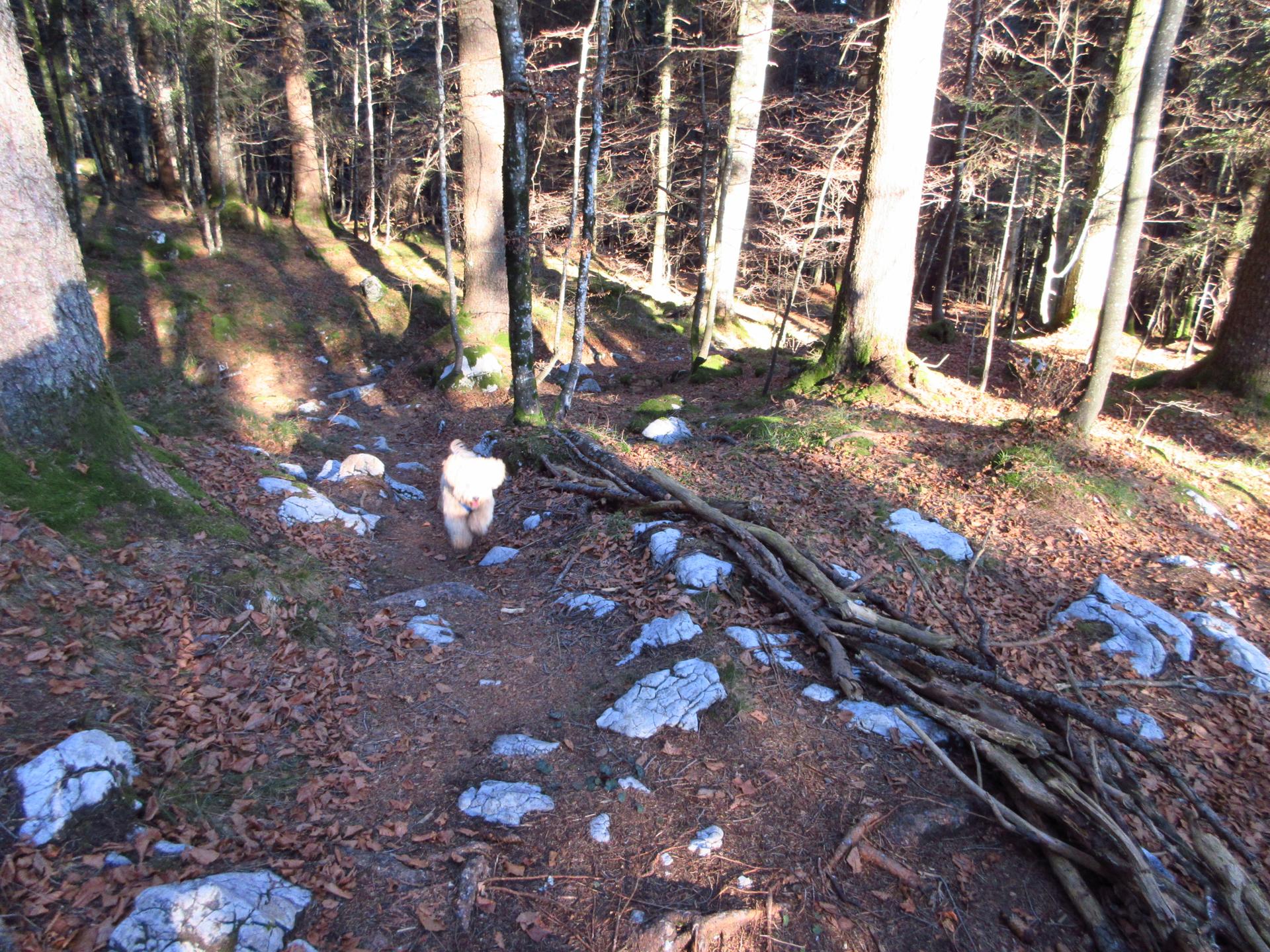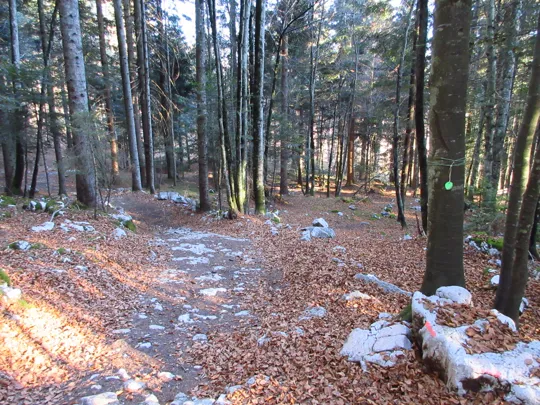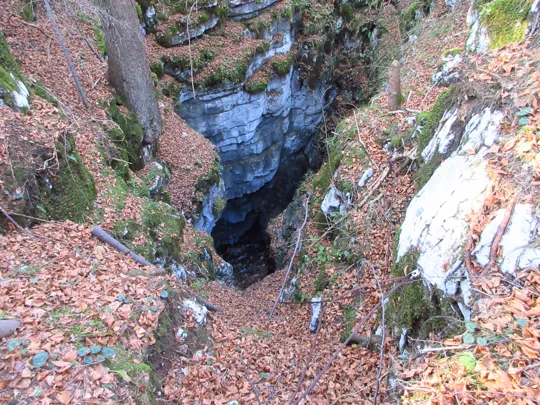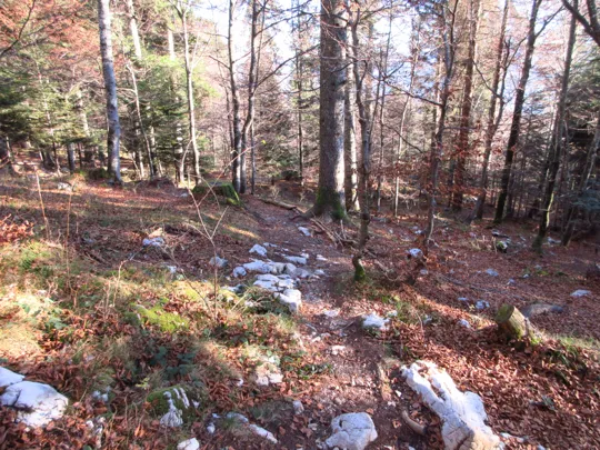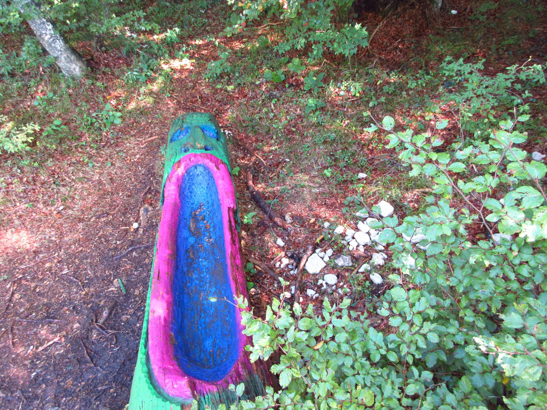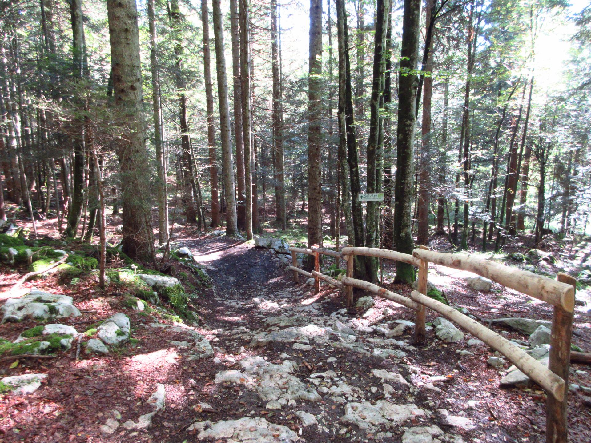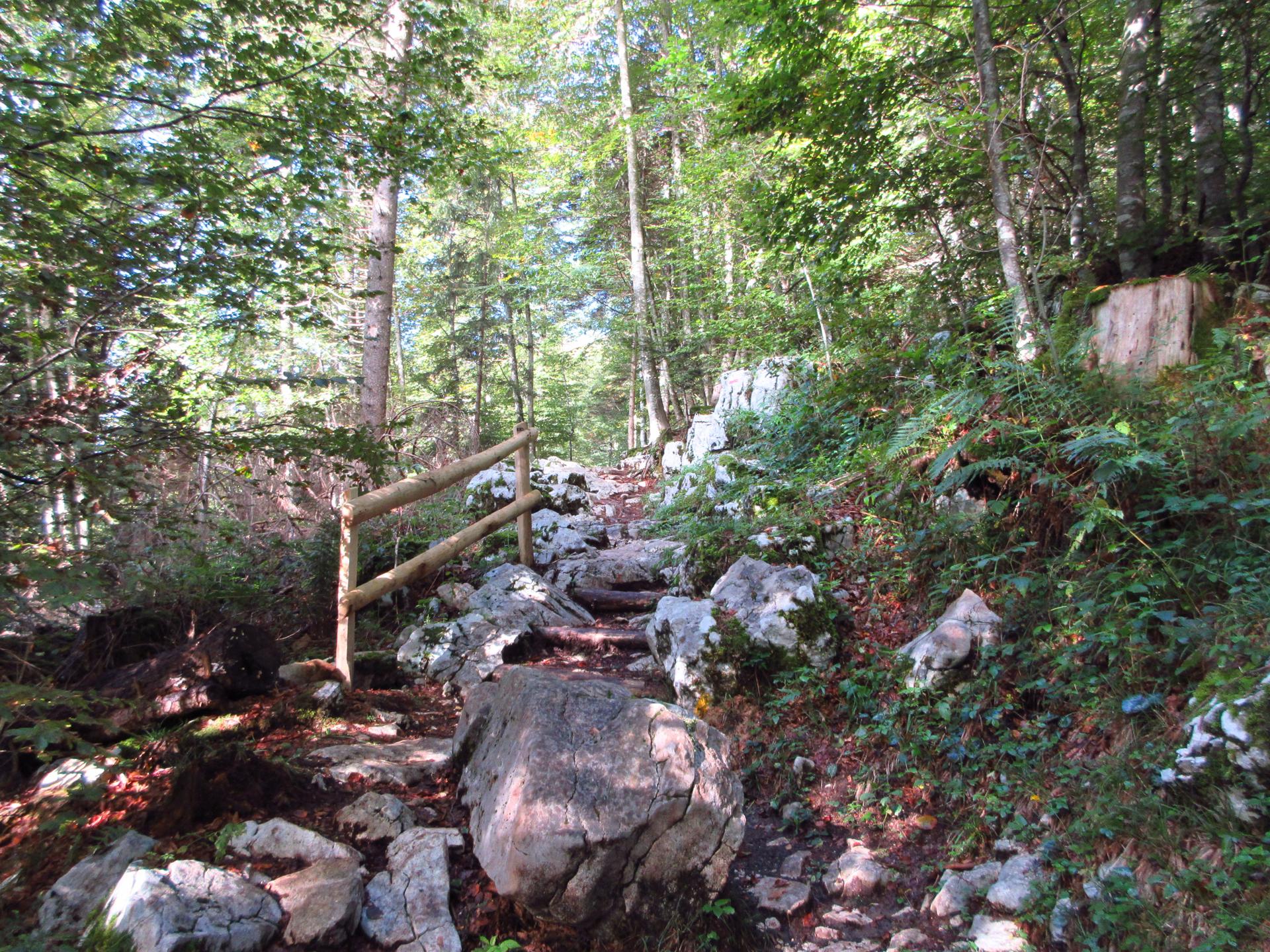 Si continua il sentiero in discesa nel bosco fino a trovare una tabella che indica a sinistra per il Buso del Taghelok.
