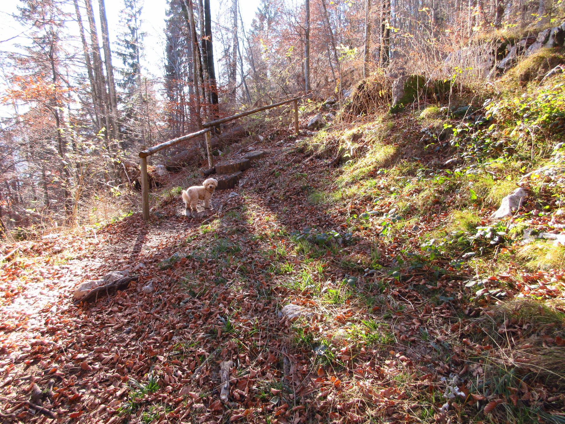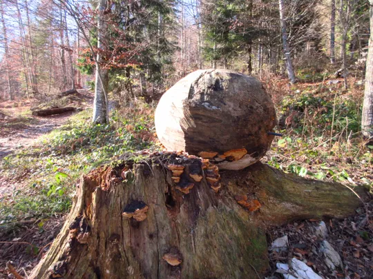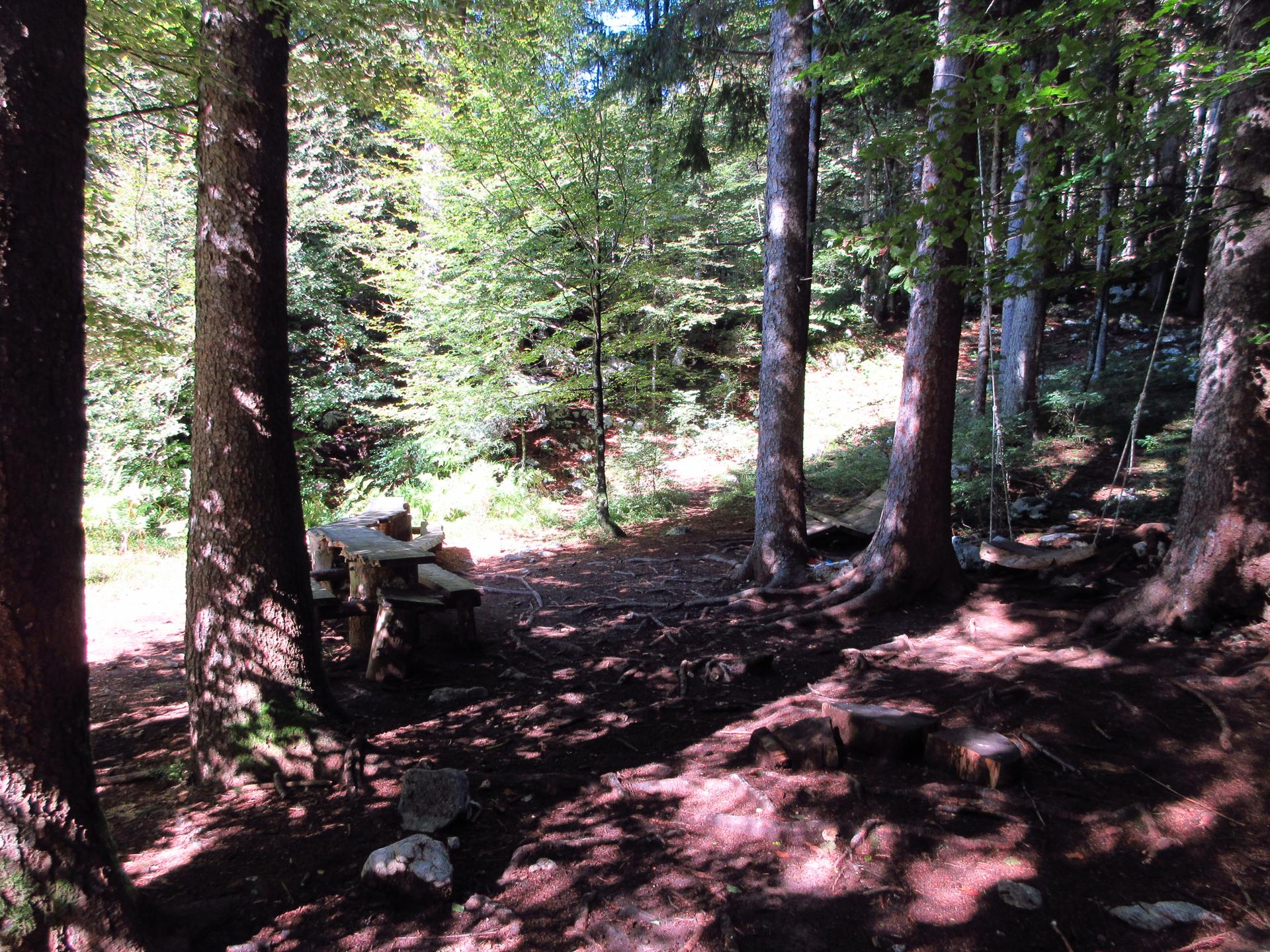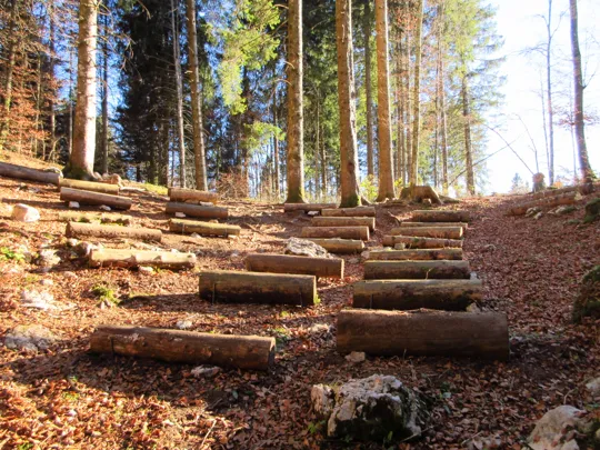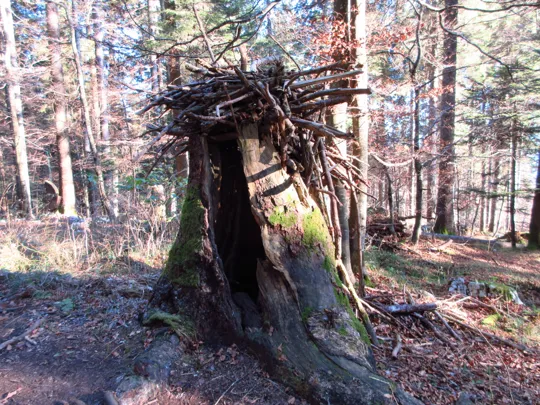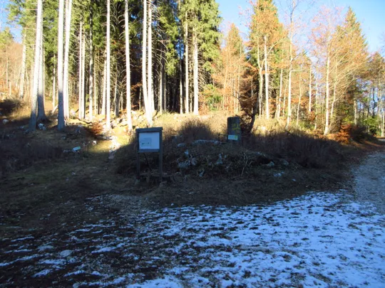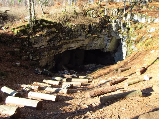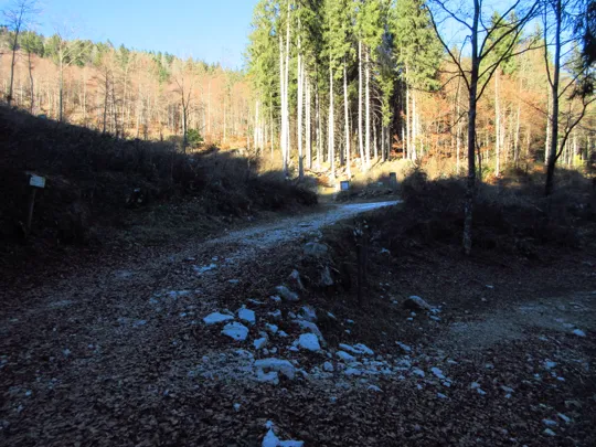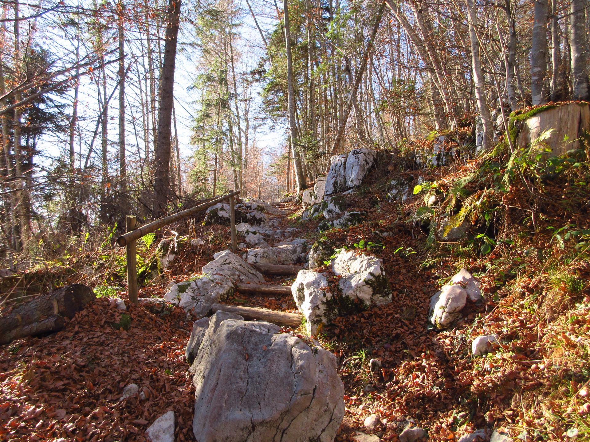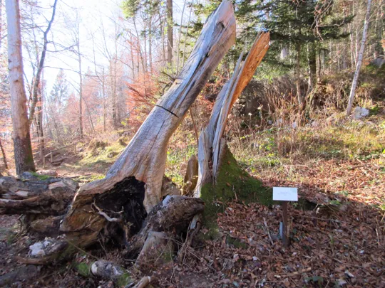 Si continua il sentiero in discesa nel bosco fino a trovare una tabella che indica a sinistra per il Buso del Taghelok.