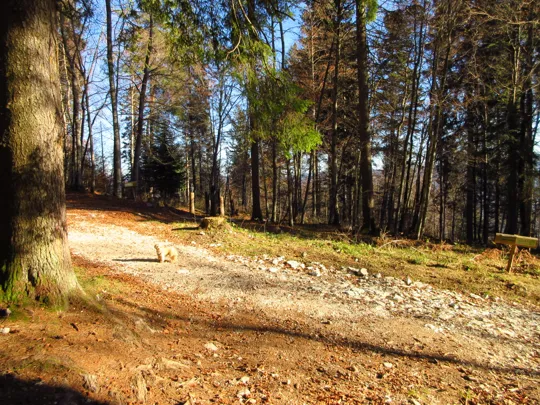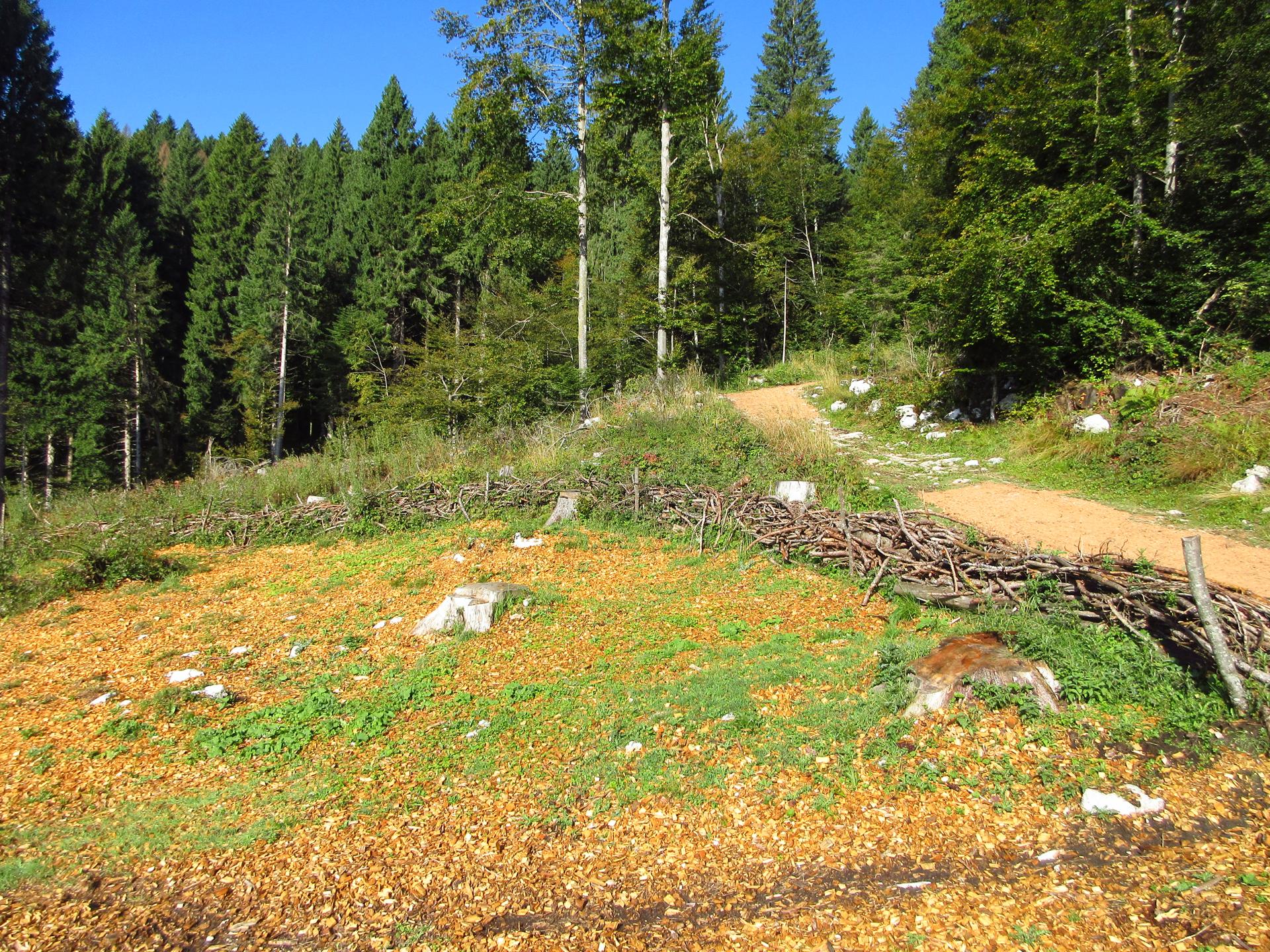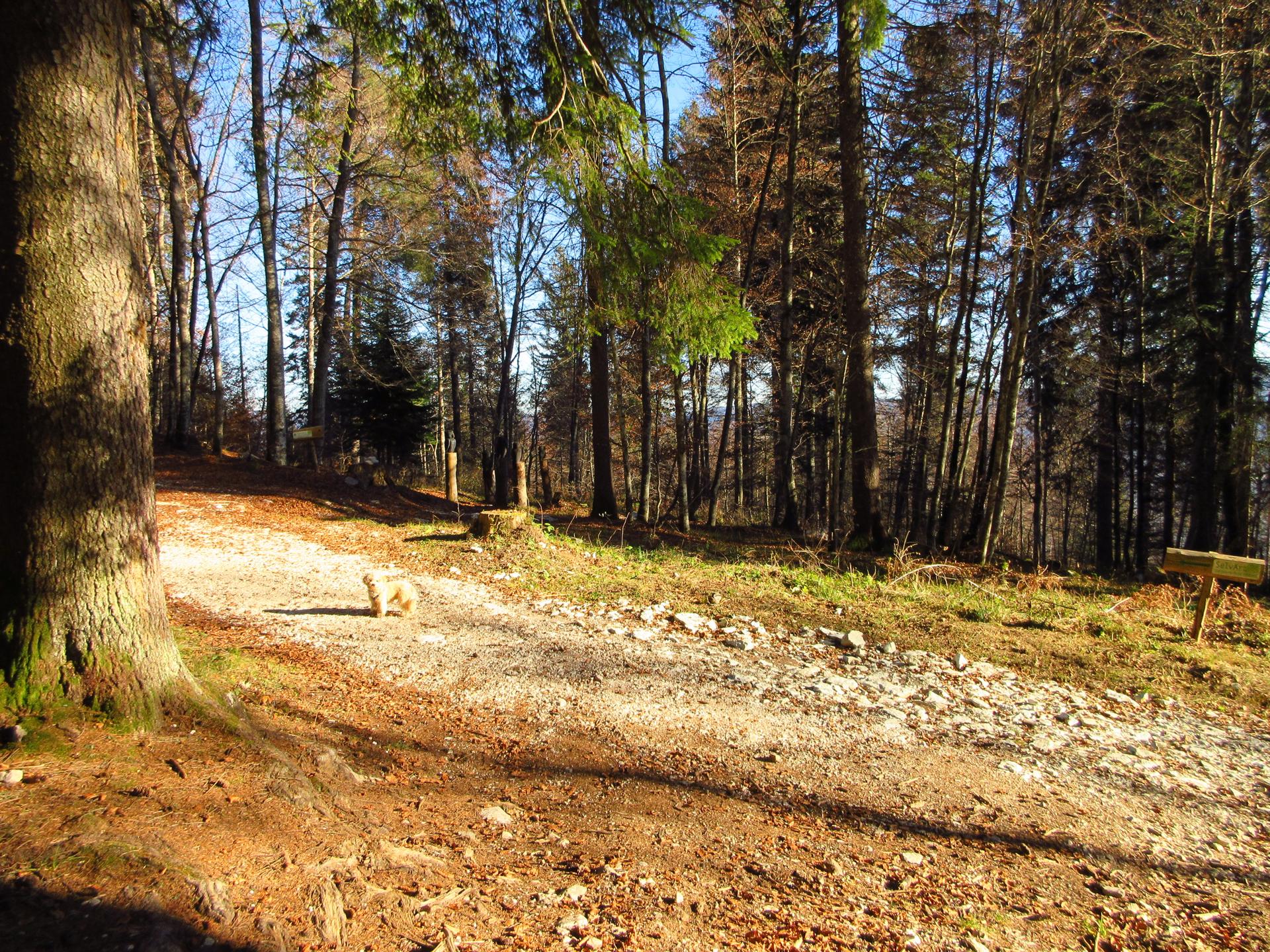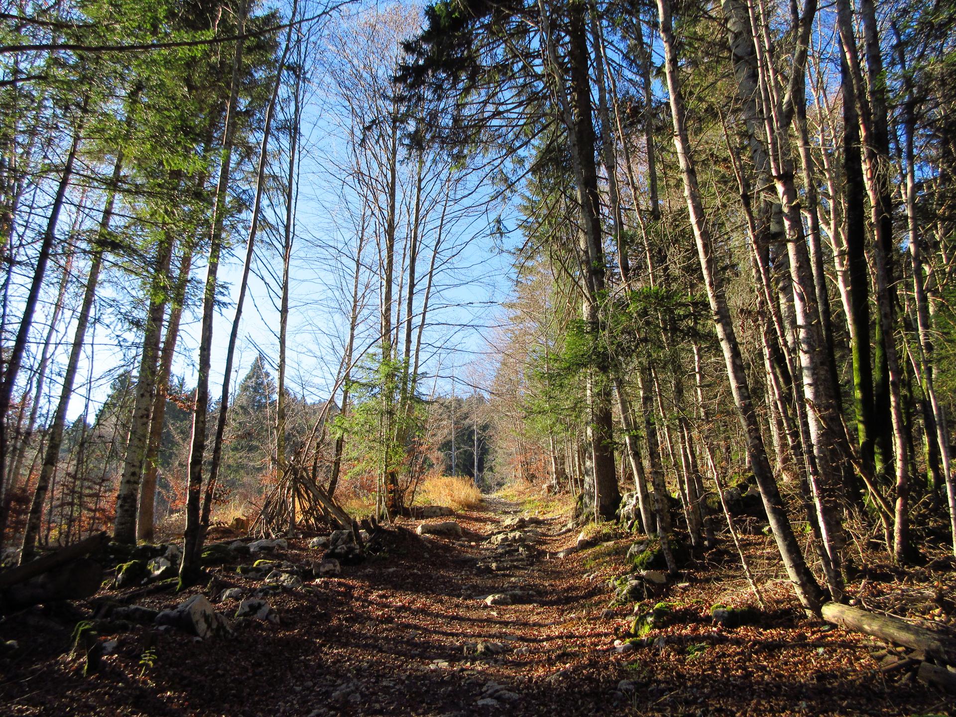 Il sentiero termina su una strada forestale, le indicazioni ci fanno proseguire a destra, in salita.
