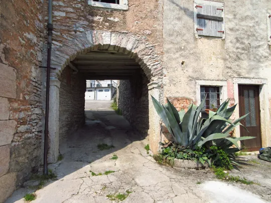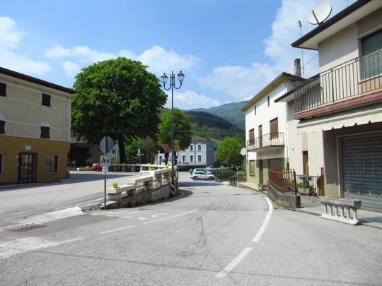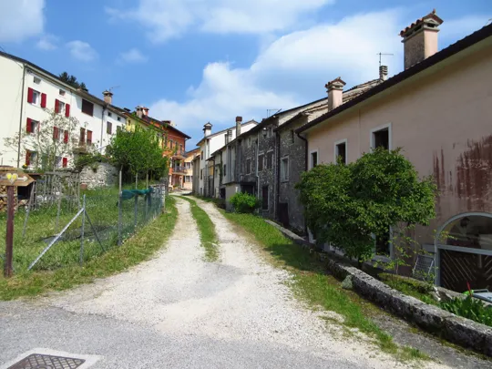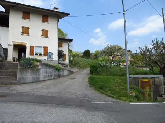 Nei pressi di contrà Muri il percorso diventa asfaltato; all’incrocio si svolta a destra, passando sotto le case della contrada.