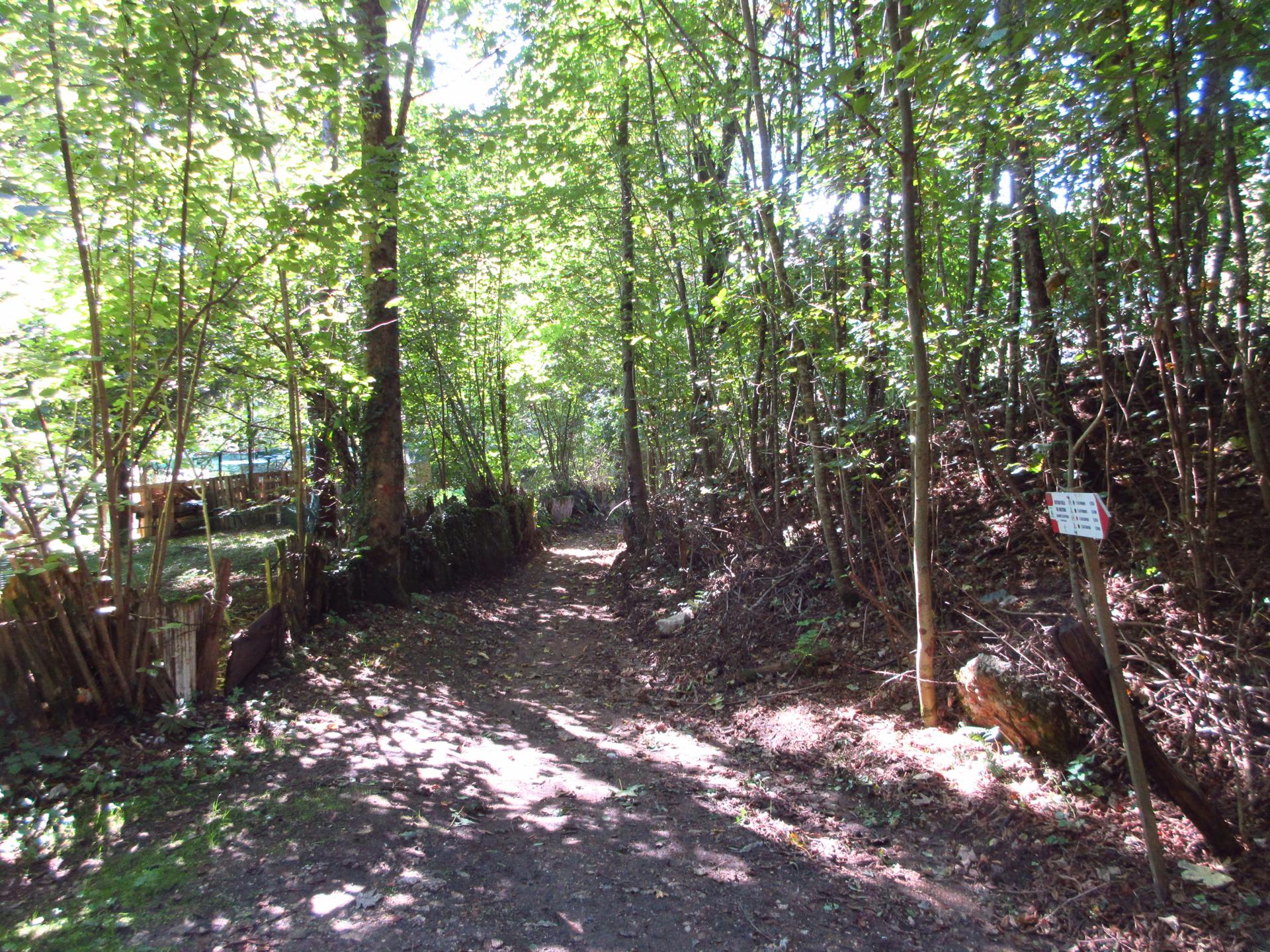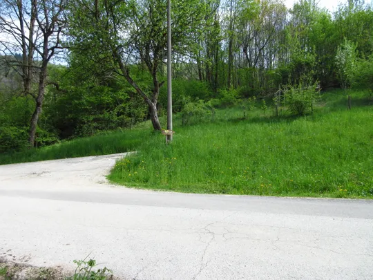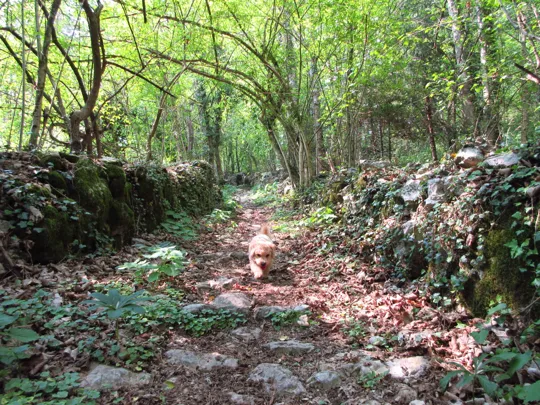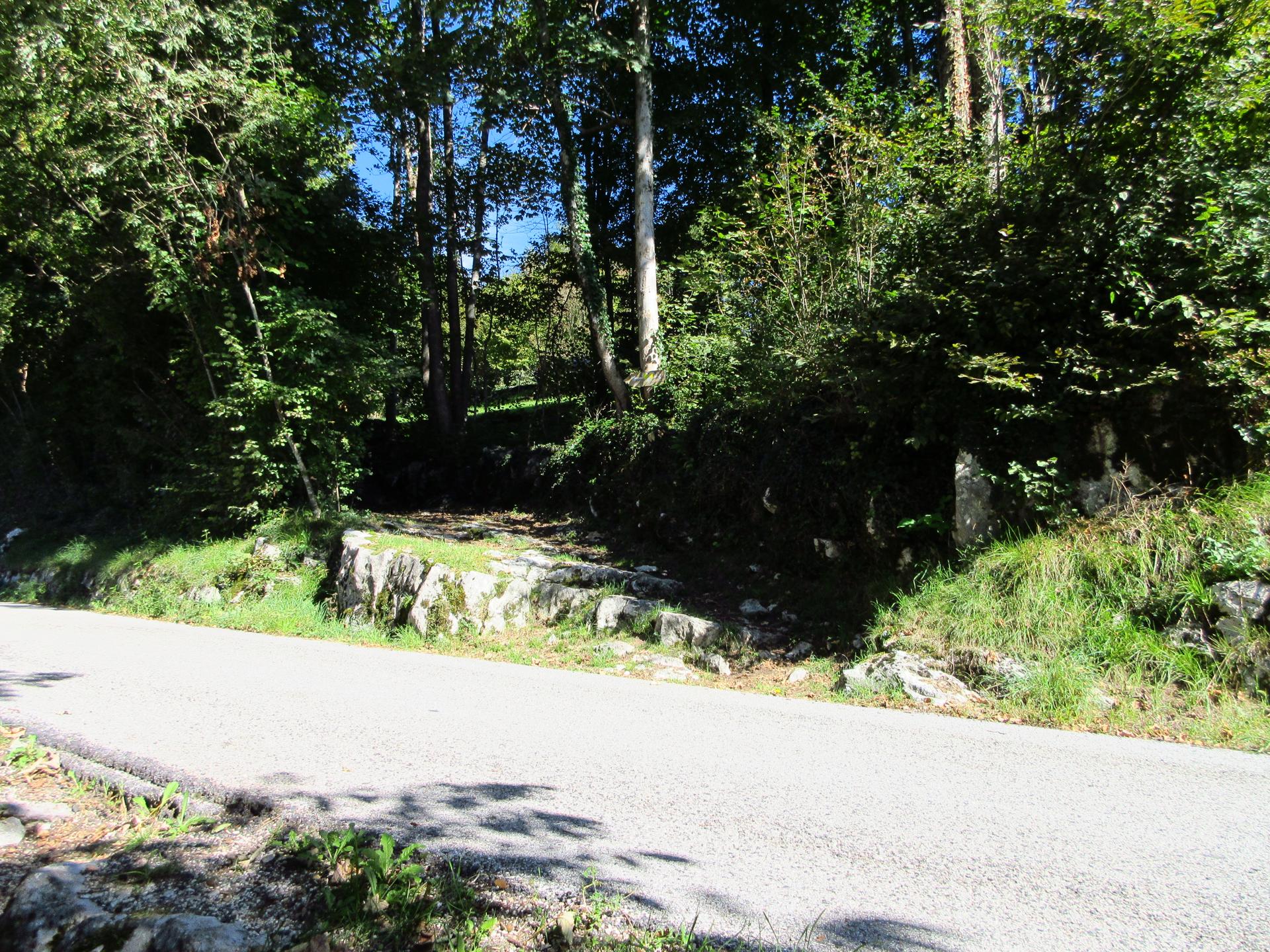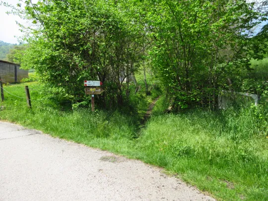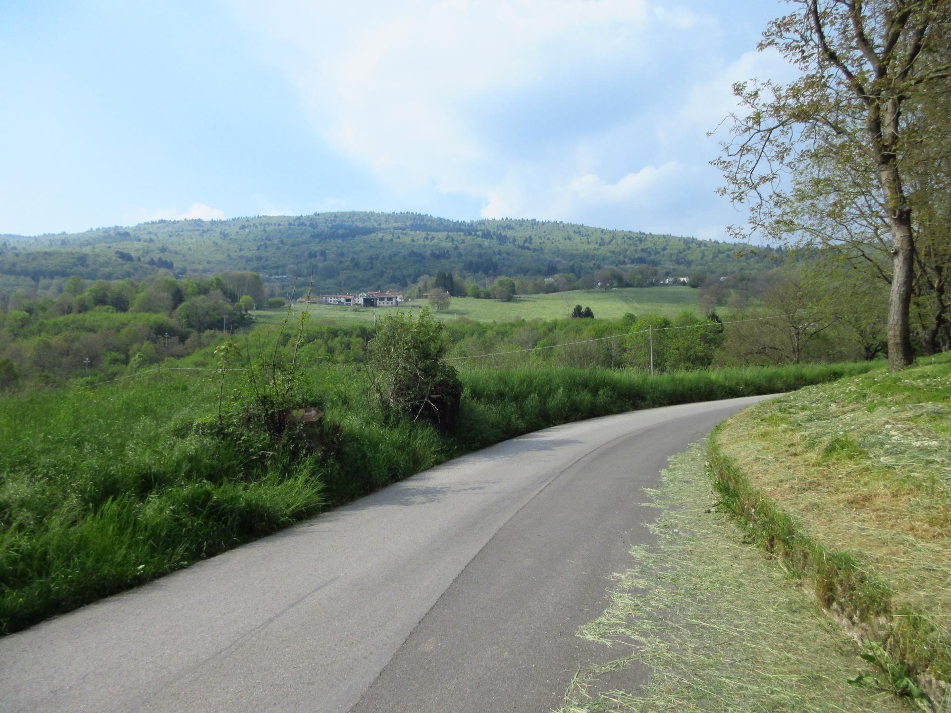 La mulattiera termina su una strada; si attraversa e si prosegue imboccando subito un’altra mulattiera che inizia proprio di fronte.