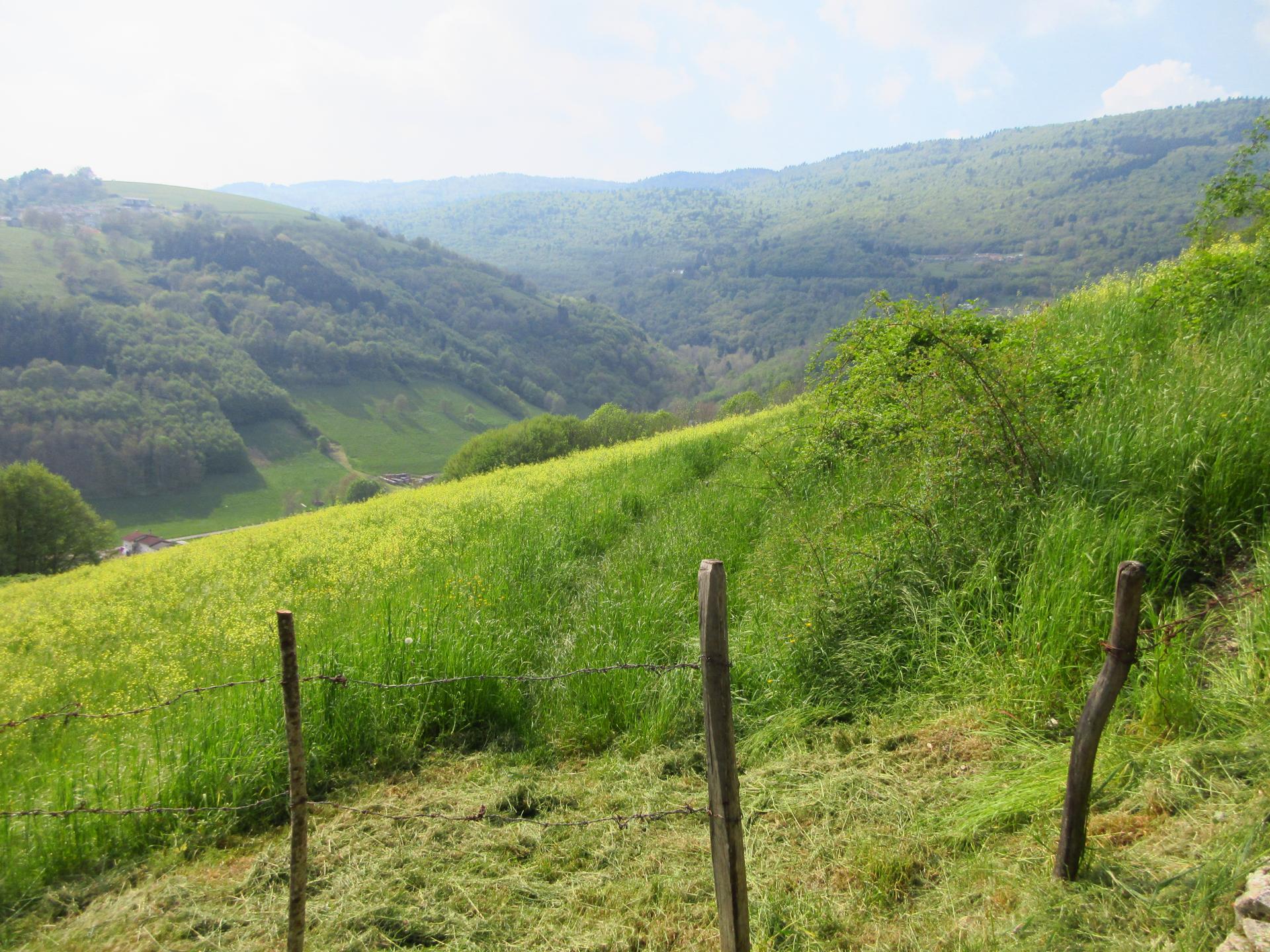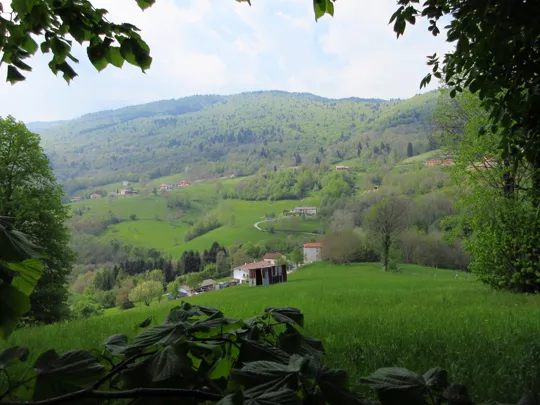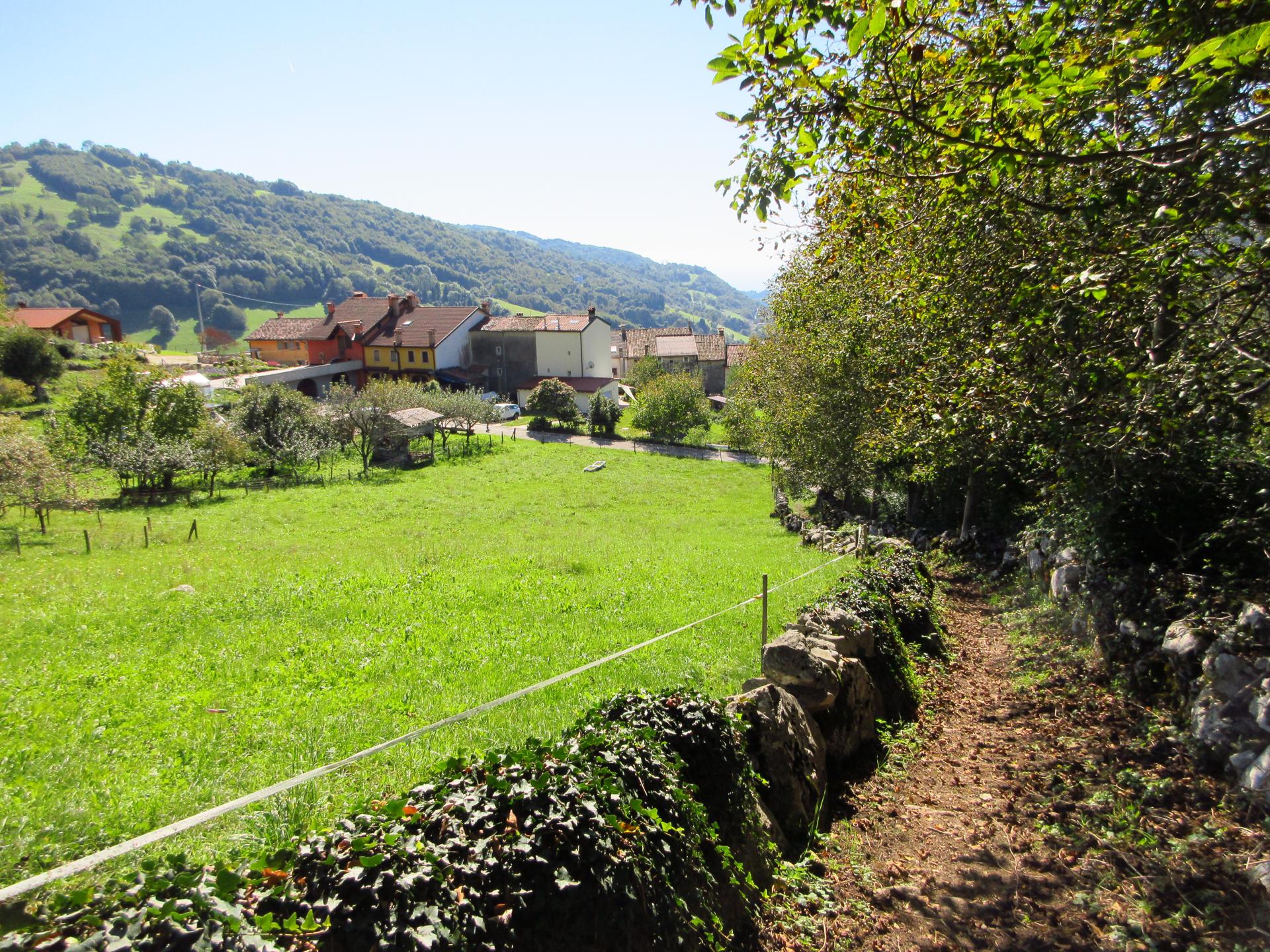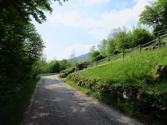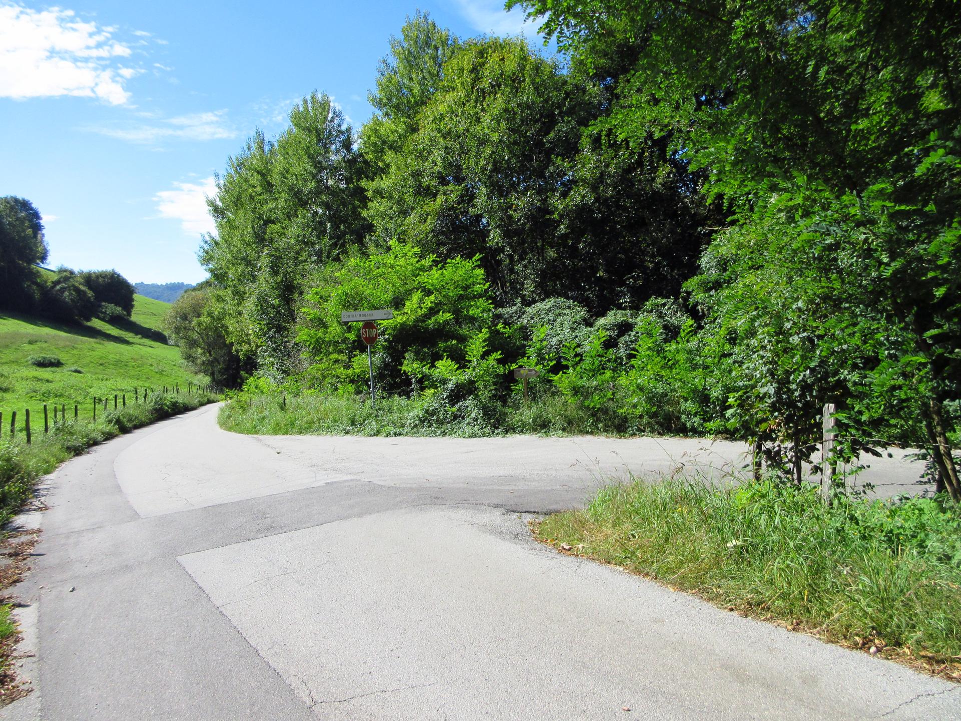 La mulattiera termina su una strada; si attraversa e si prosegue imboccando subito un’altra mulattiera che inizia proprio di fronte.