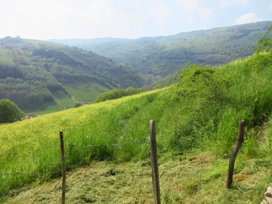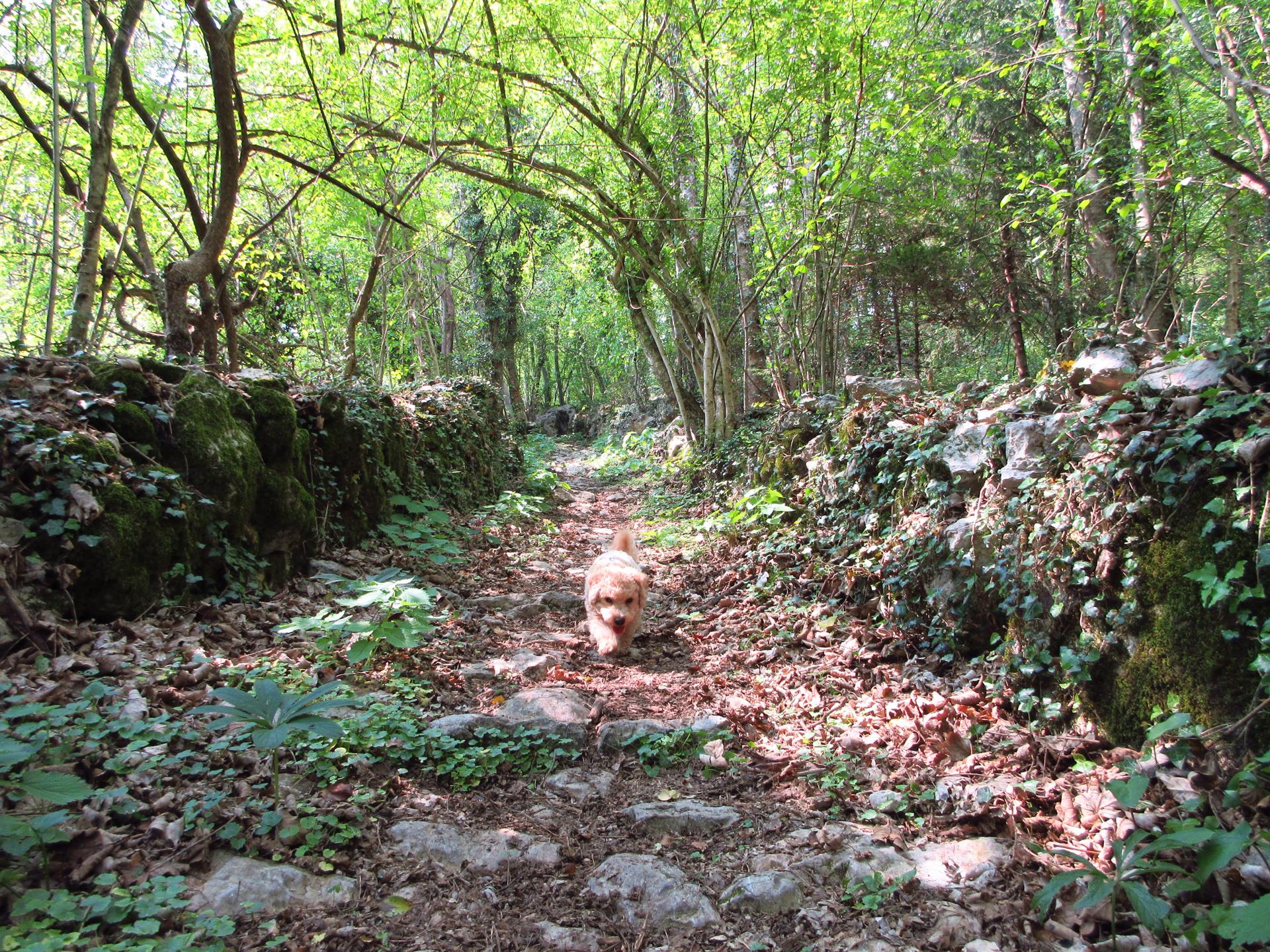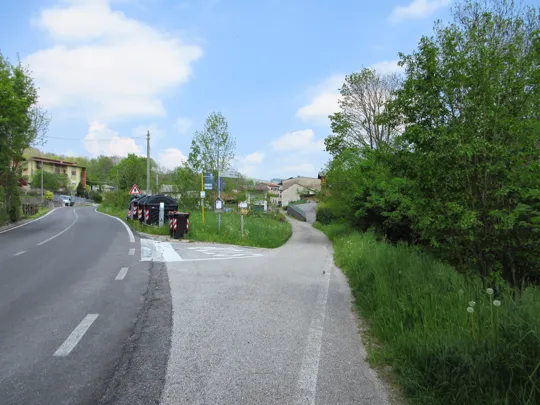 Il sentiero sbuca sulla strada provinciale Vitarolo, ma la lascia subito imboccando la strada per Abri Sassi.
