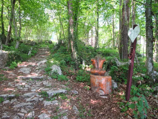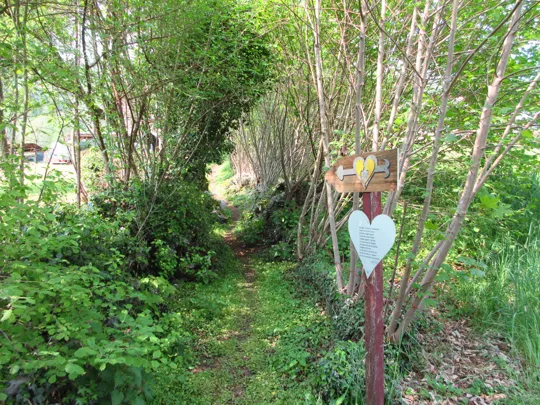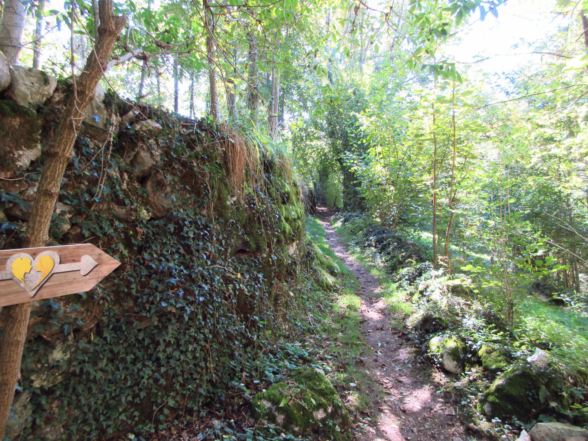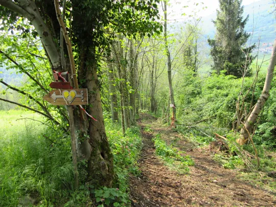 E' ben segnalato quasi dappertutto con una tabella in legno con un cuore ed una freccia, solo in un paio di punti bisogna riuscire a trovare dov'è l'indicazione.