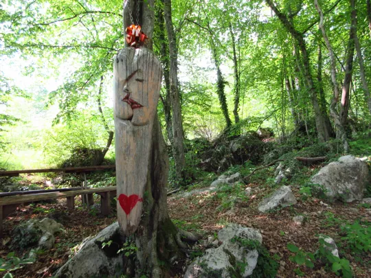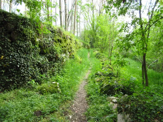 Imboccata la strada asfaltata, sulla destra si incontra un antico pozzo appena restaurato, mentre sulla sinistra si apre una piccola voragine.