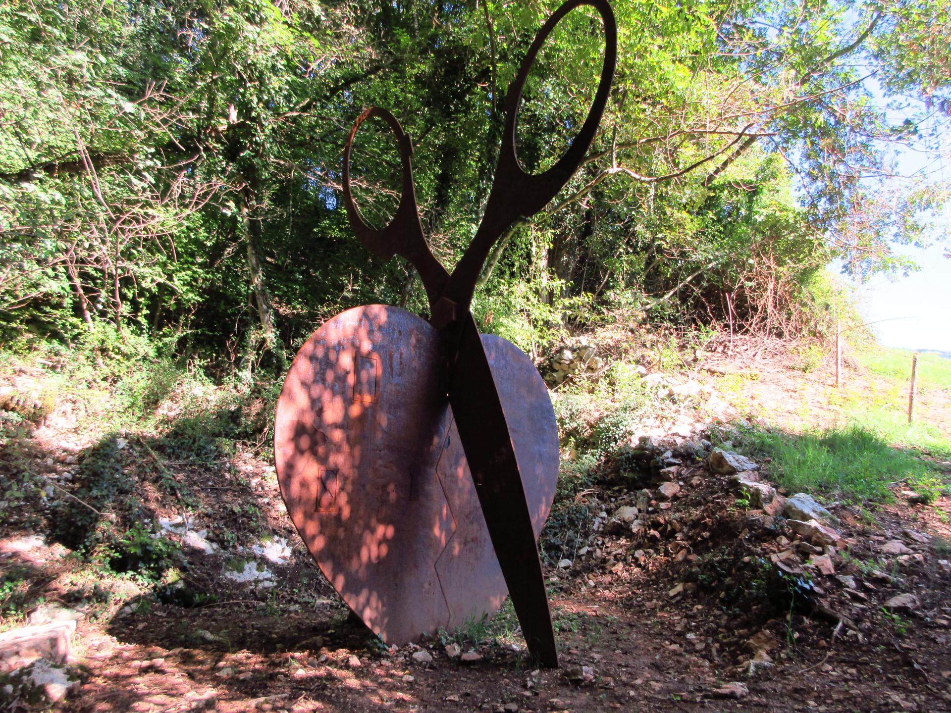 Questa scultura simboleggia il coraggio necessario per chiudere un rapporto amoroso quando questo diventa dannoso o insostenibile. La forbice, strumento di separazione e decisione, è qui rappresentata in scala monumentale, accentuando la difficoltà e la grandezza del gesto di porre fine a una relazione. Il cuore, simbolo universale dell'amore, tagliato a metà, suggerisce la sofferenza ma anche la liberazione che può derivare da una decisione simile.