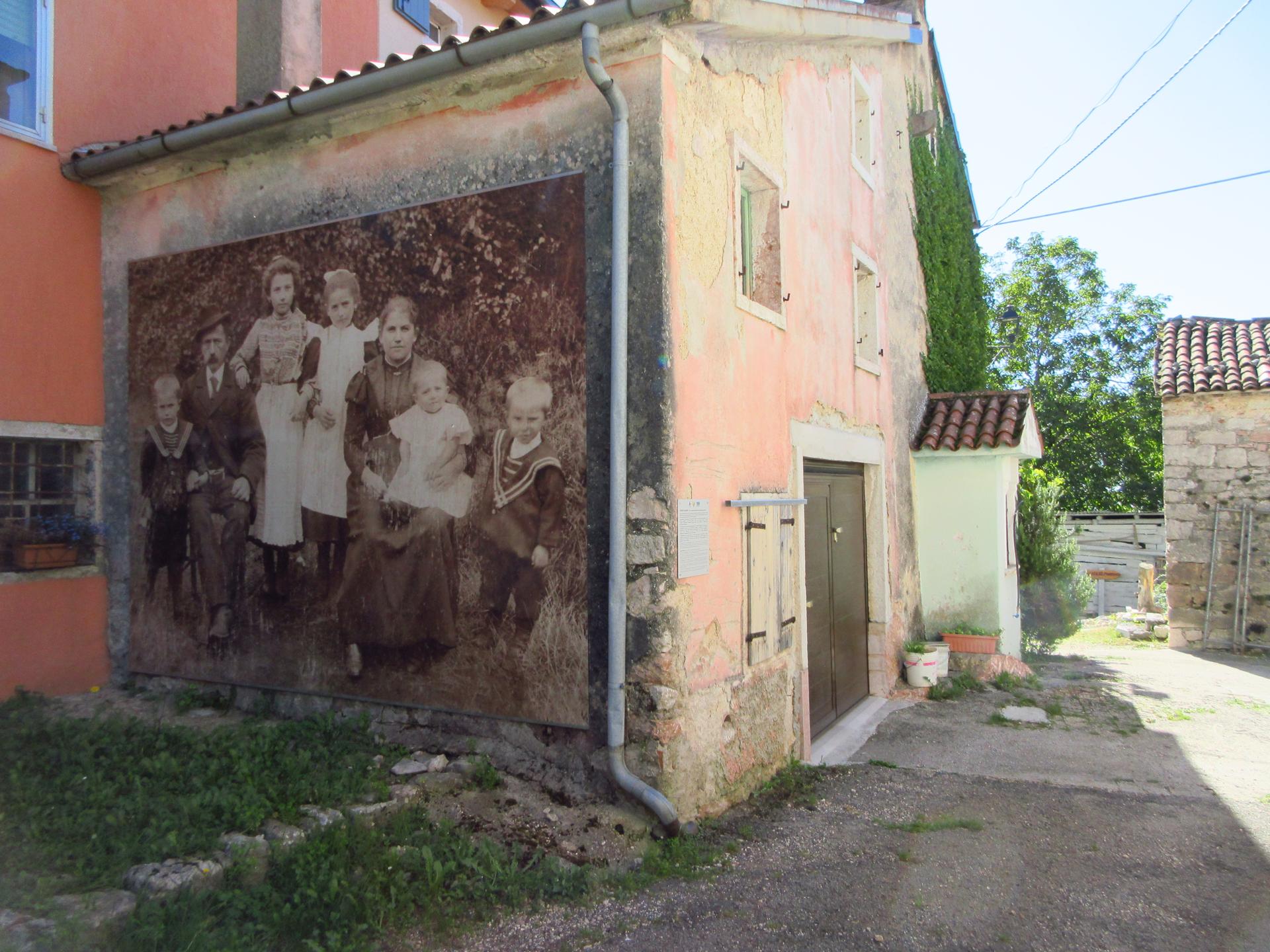 Superata la contrada si incontra una piccola lapide ed un'opera sospesa.