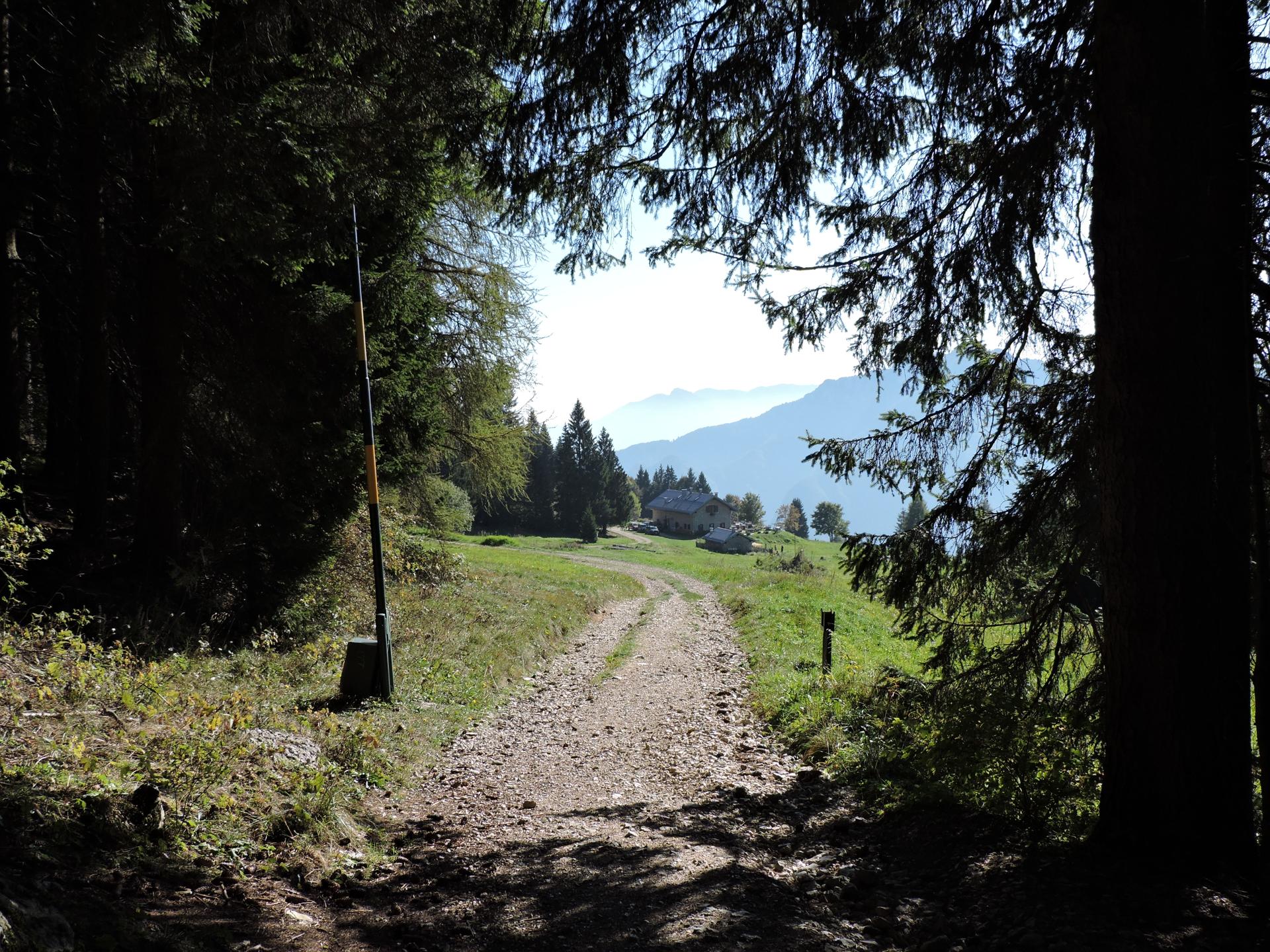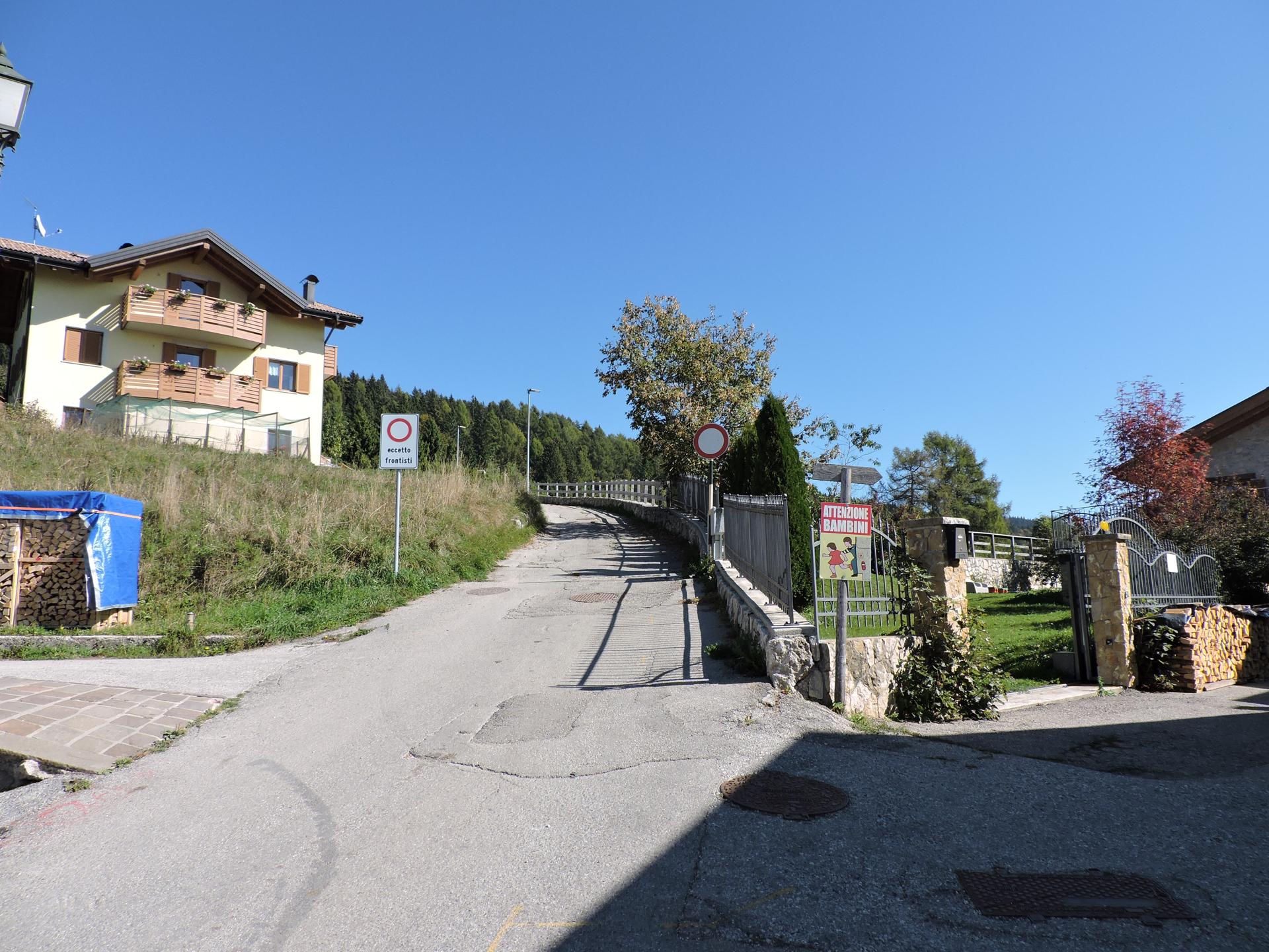 Da piazza Marconi, nel centro di Luserna, si prosegue a sud verso piazza Battisti. Superata la piazza la strada si divide e le indicazioni ci portano in salita sulla strada a sinistra.