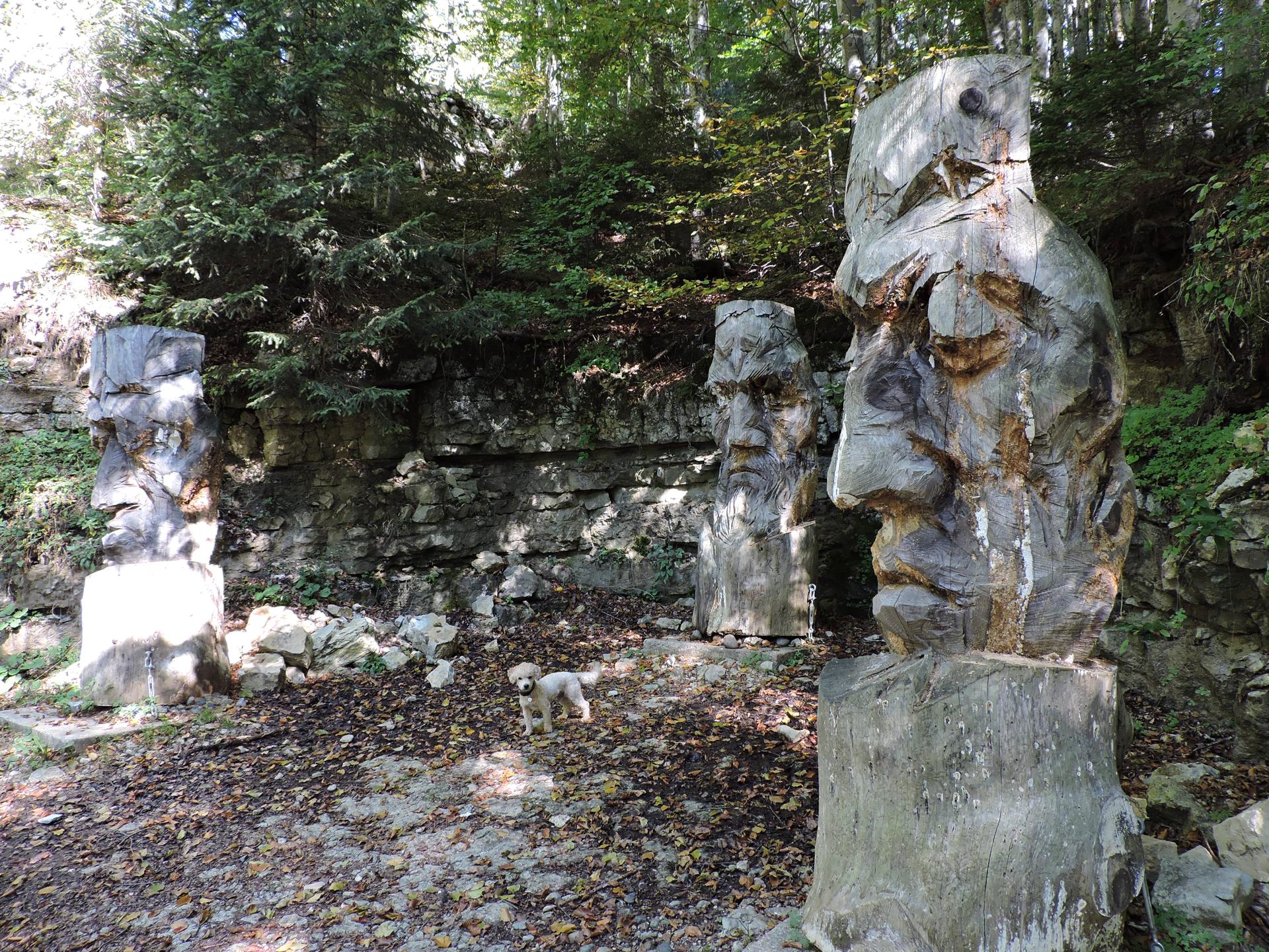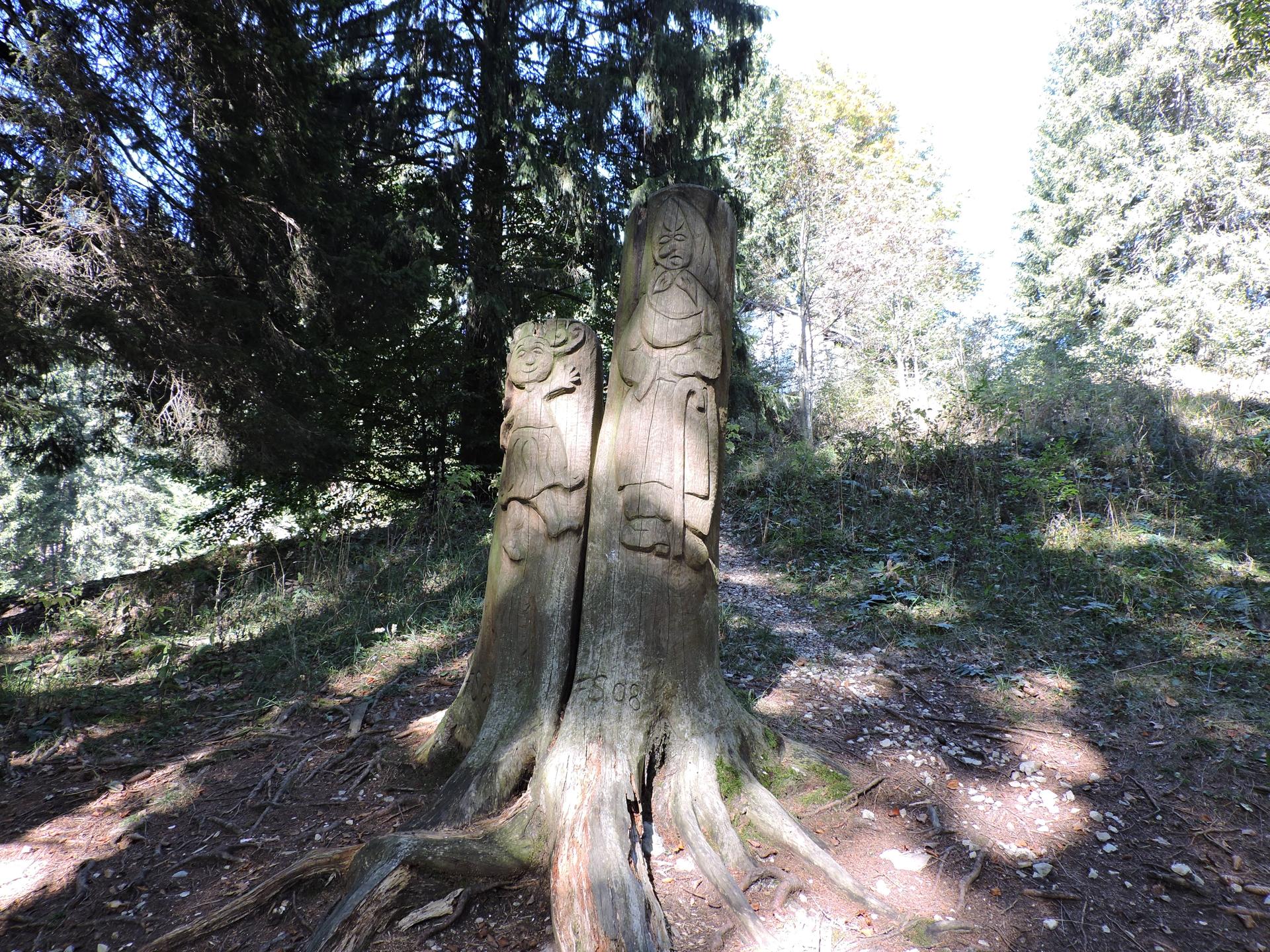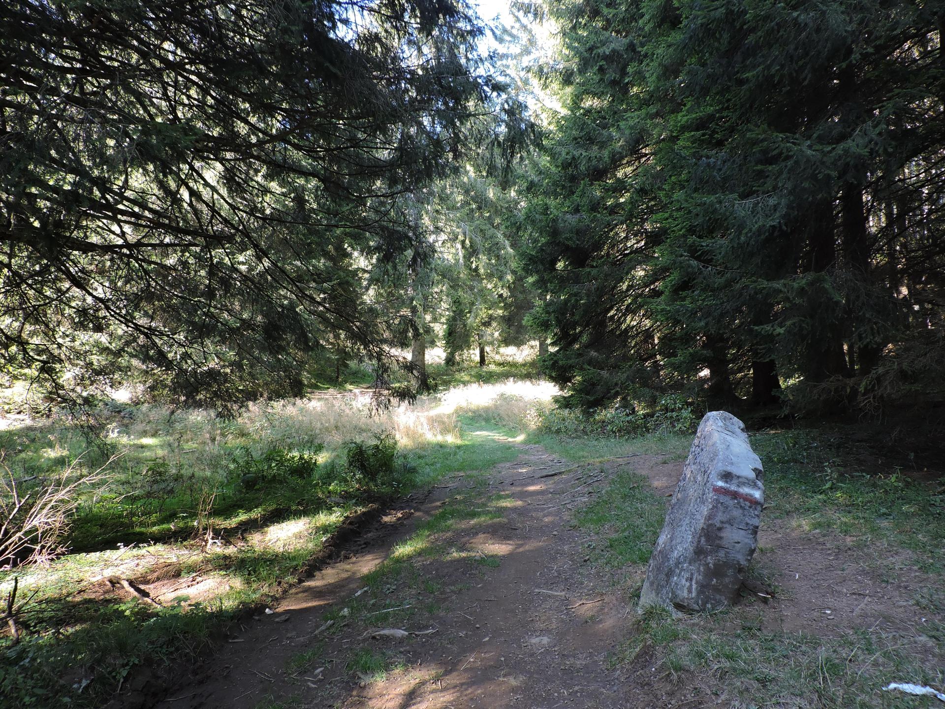 Dopo 400 metri si esce dalla strada prendendo il sentiero a sinistra. Trut controlla l'ingresso con una delle sue due facce.