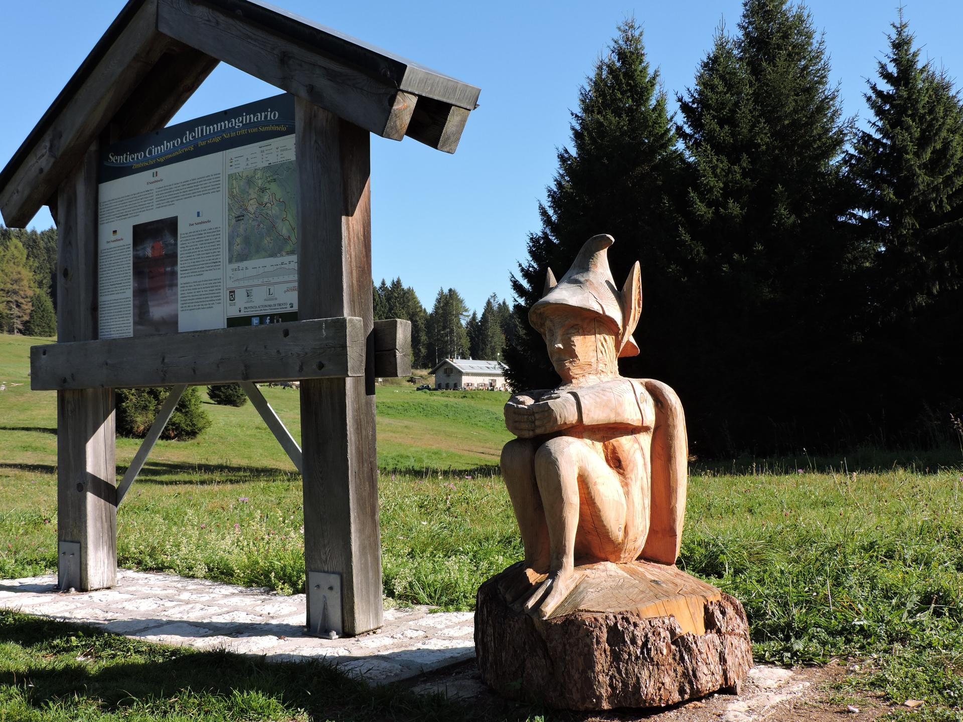 Da malga Campo, sul prato verso nord-ovest, arriviamo dal folletto Sambinelo.