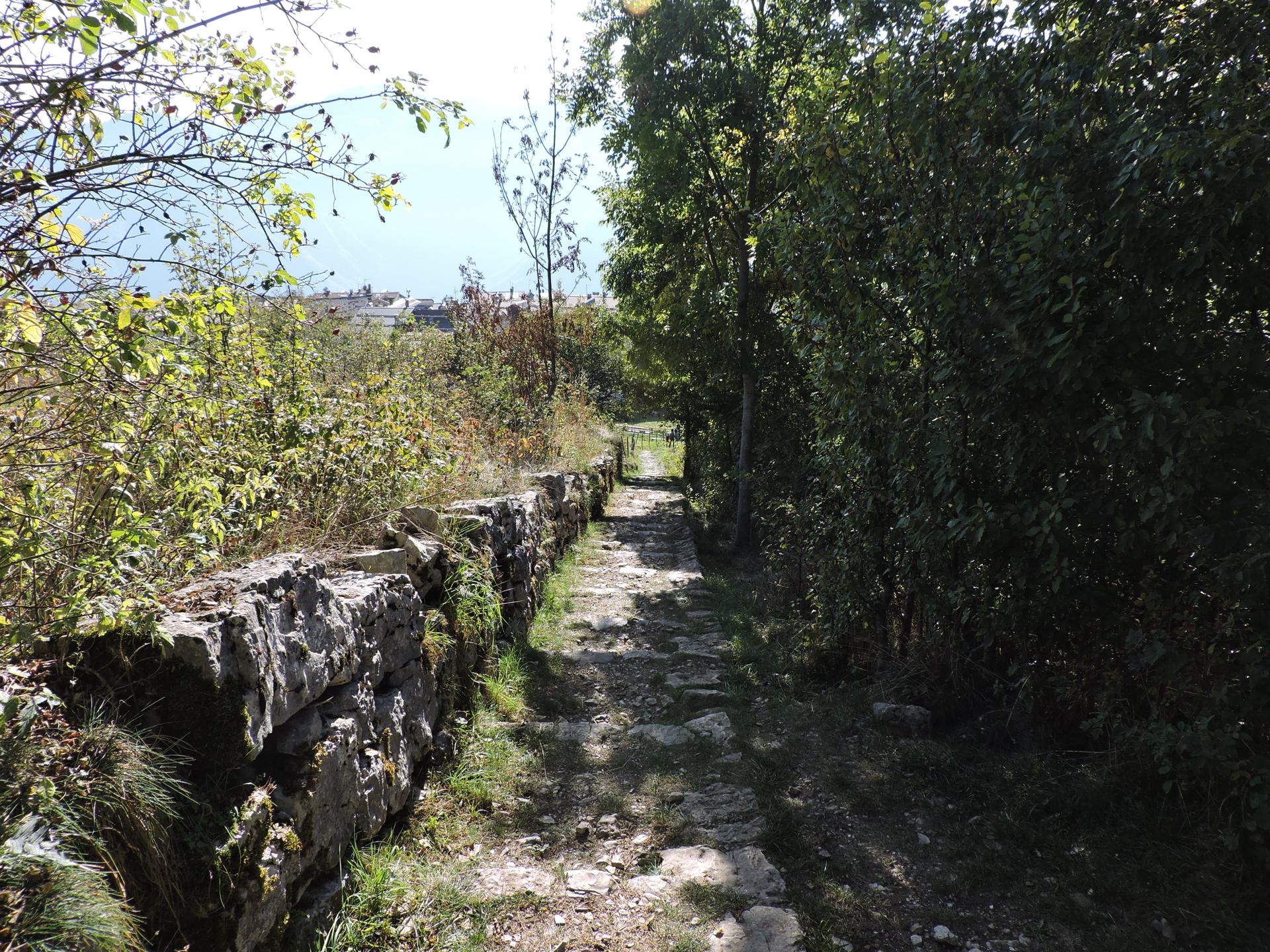Le indicazioni ci portano a salire per un sentiero, salita che termina al congiungimento con una strada.