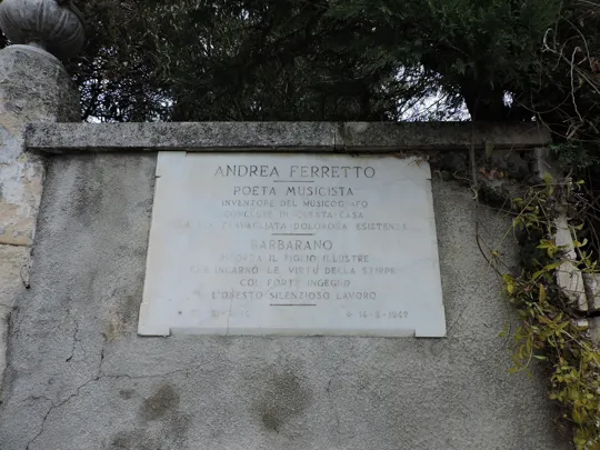 Iniziata la salita si passa presso la casa di Andrea Ferretto, poeta musicista e inventore del musicografo.