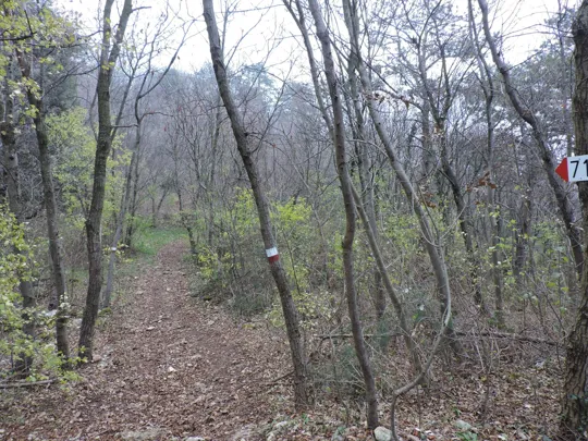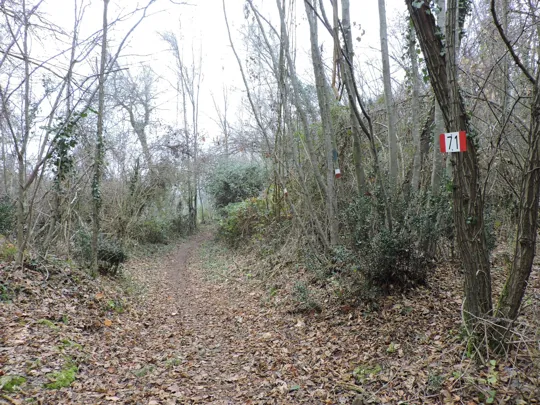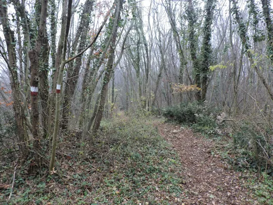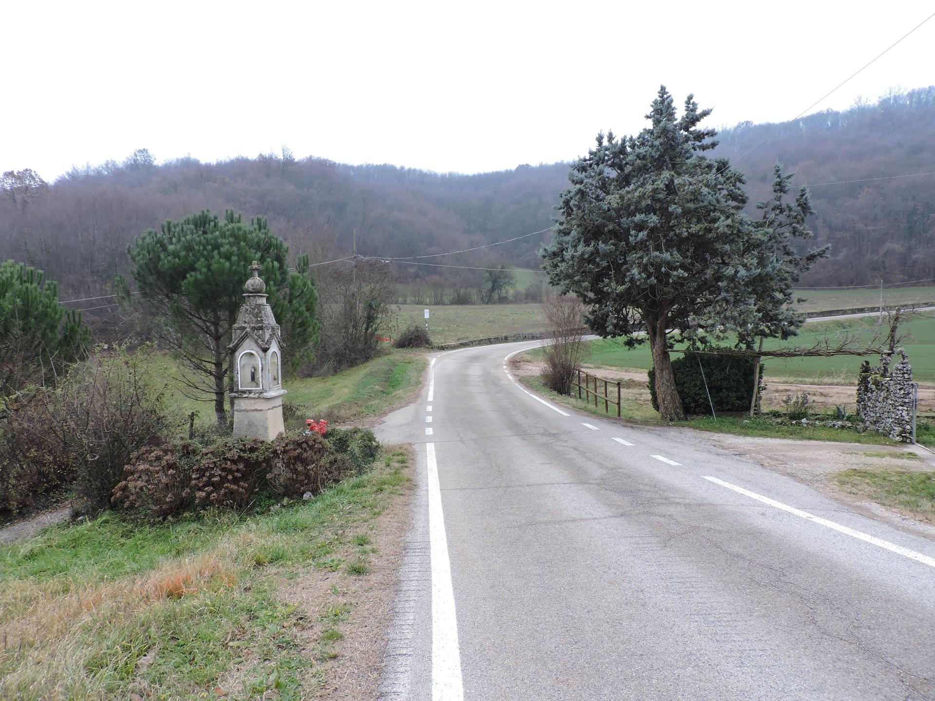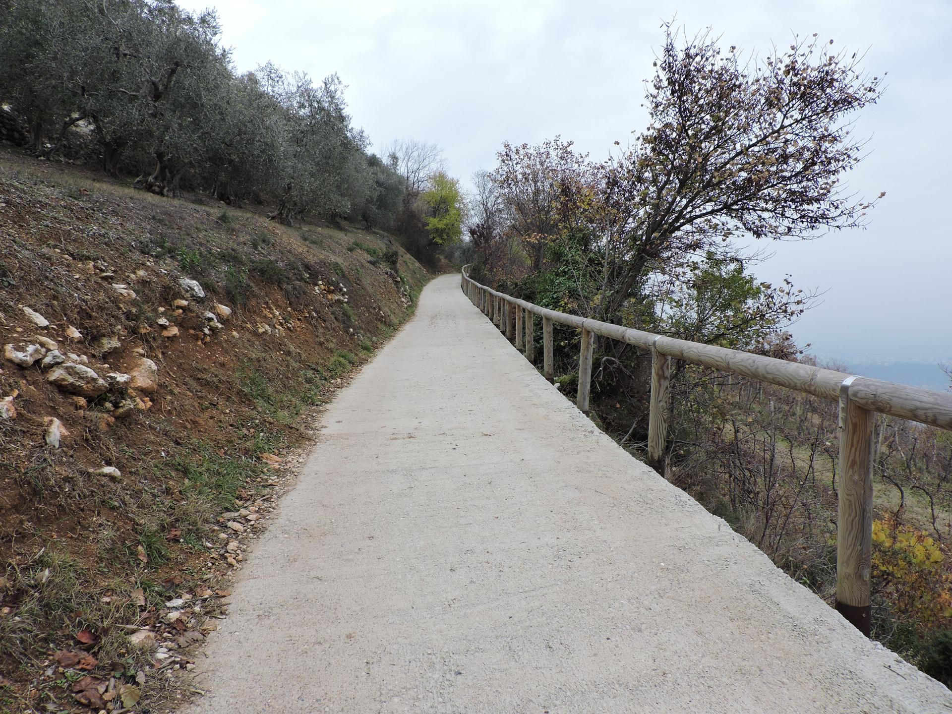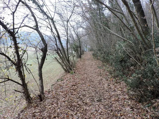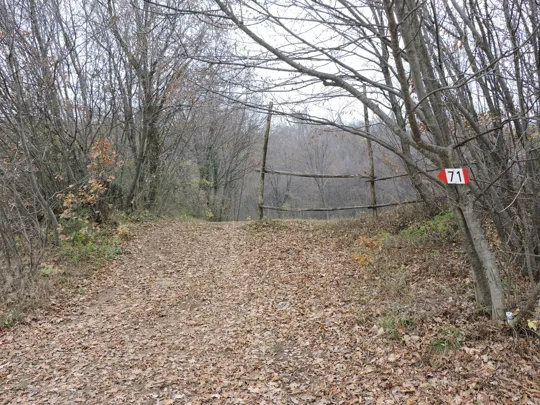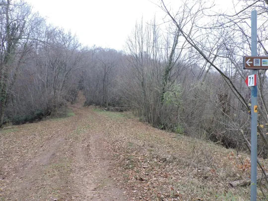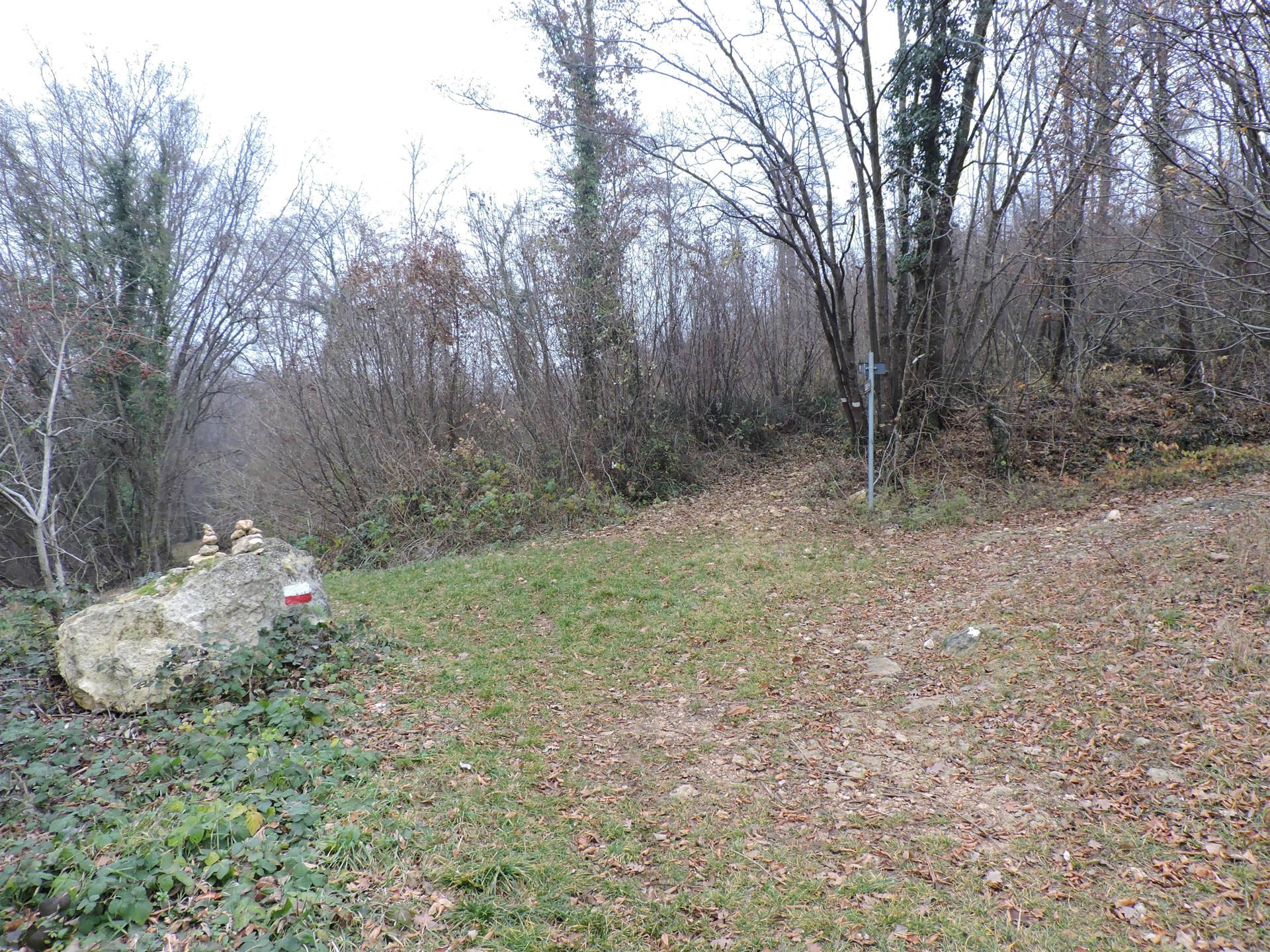 Dopo circa 300 metri, superato il capitello, quando la strada svolta leggermente a destra, si riprende il sentiero che ne esce a sinistra.