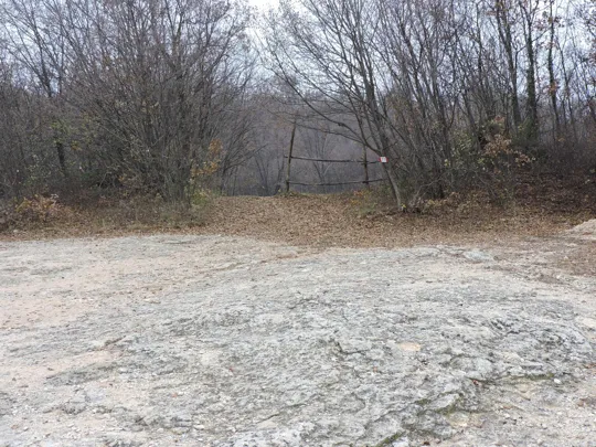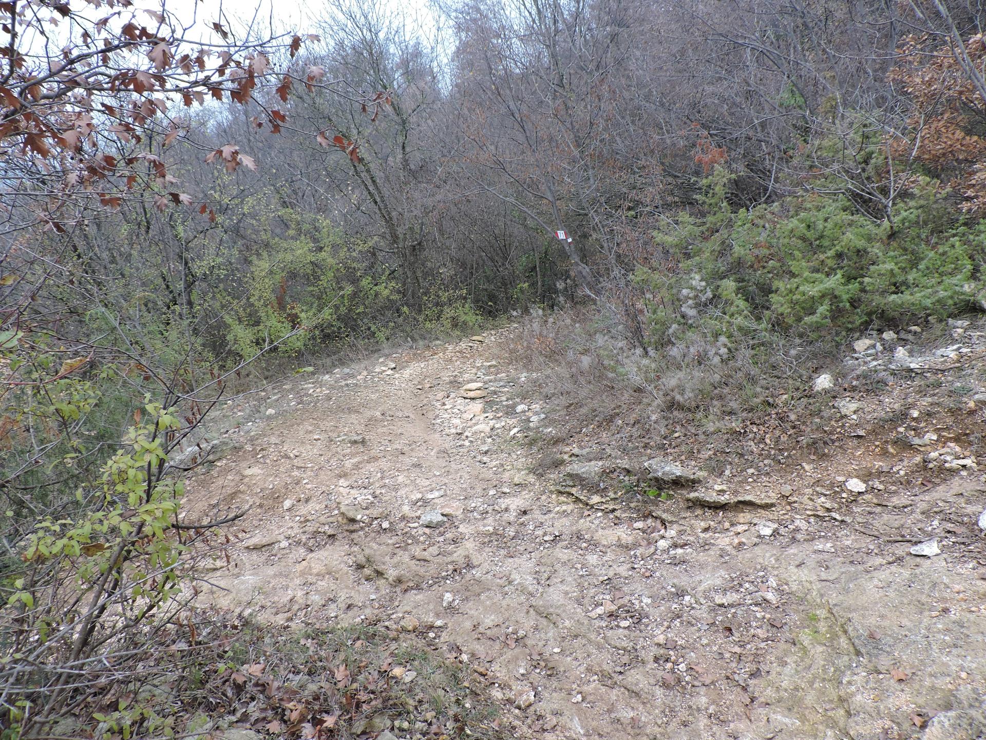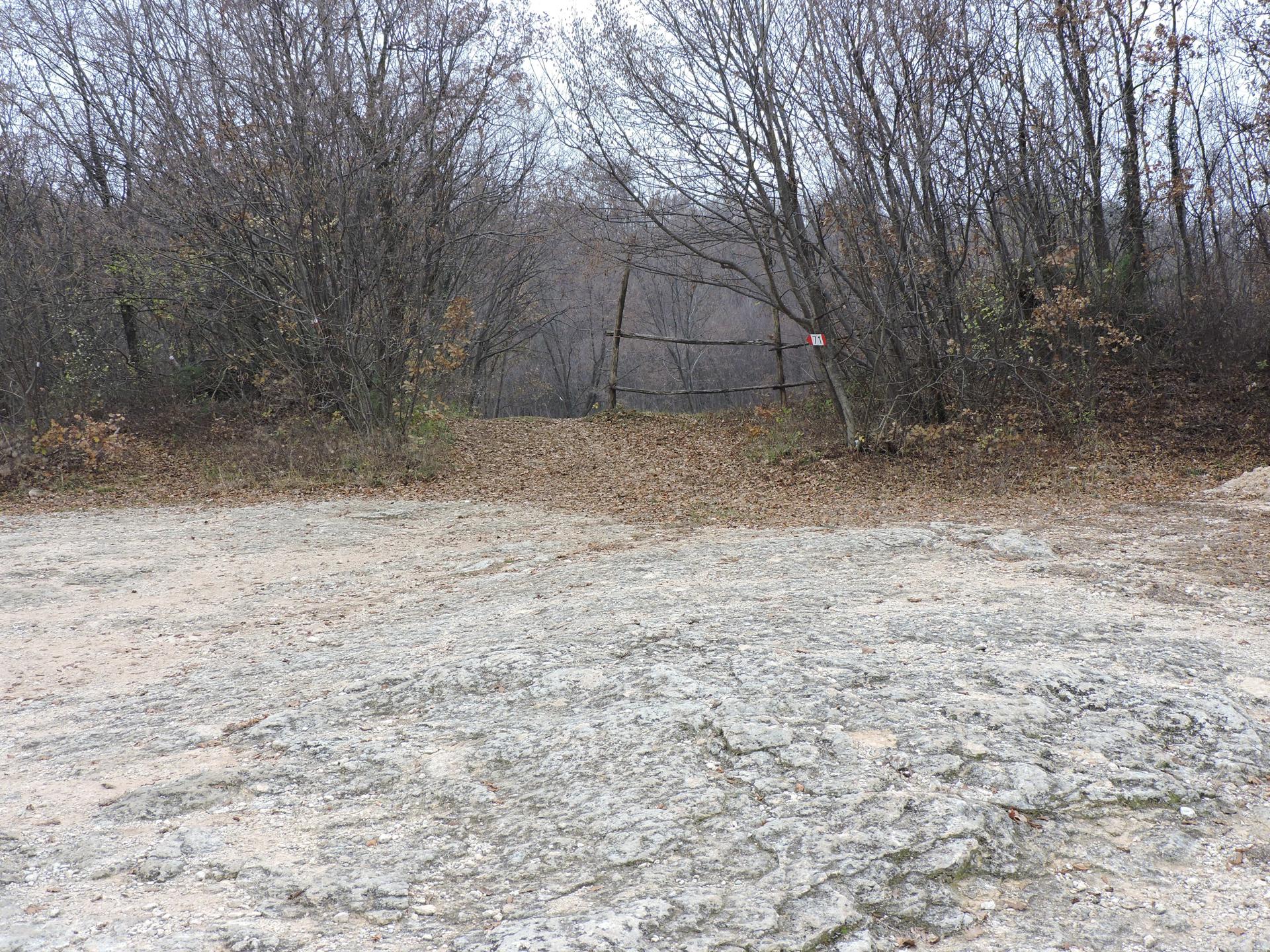 Si arriva ad un piazzale/parcheggio incrociando la strada lasciata in precedenza, il sentiero è segnalato oltre il piano roccioso che deve essere attraversato.