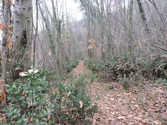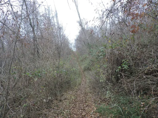 Dopo 400 metri fate attenzione all'incrocio di sentieri e strade. Il sentiero giusto è quello di fronte, il più stretto ed in salita. L'indicazione c'è ma è poco visibile.