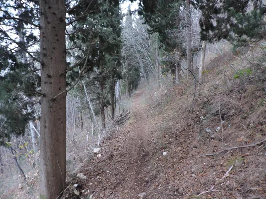 Il sentiero diventa strada che poi rapidamente si lascia per una mulattiera tornantosa.