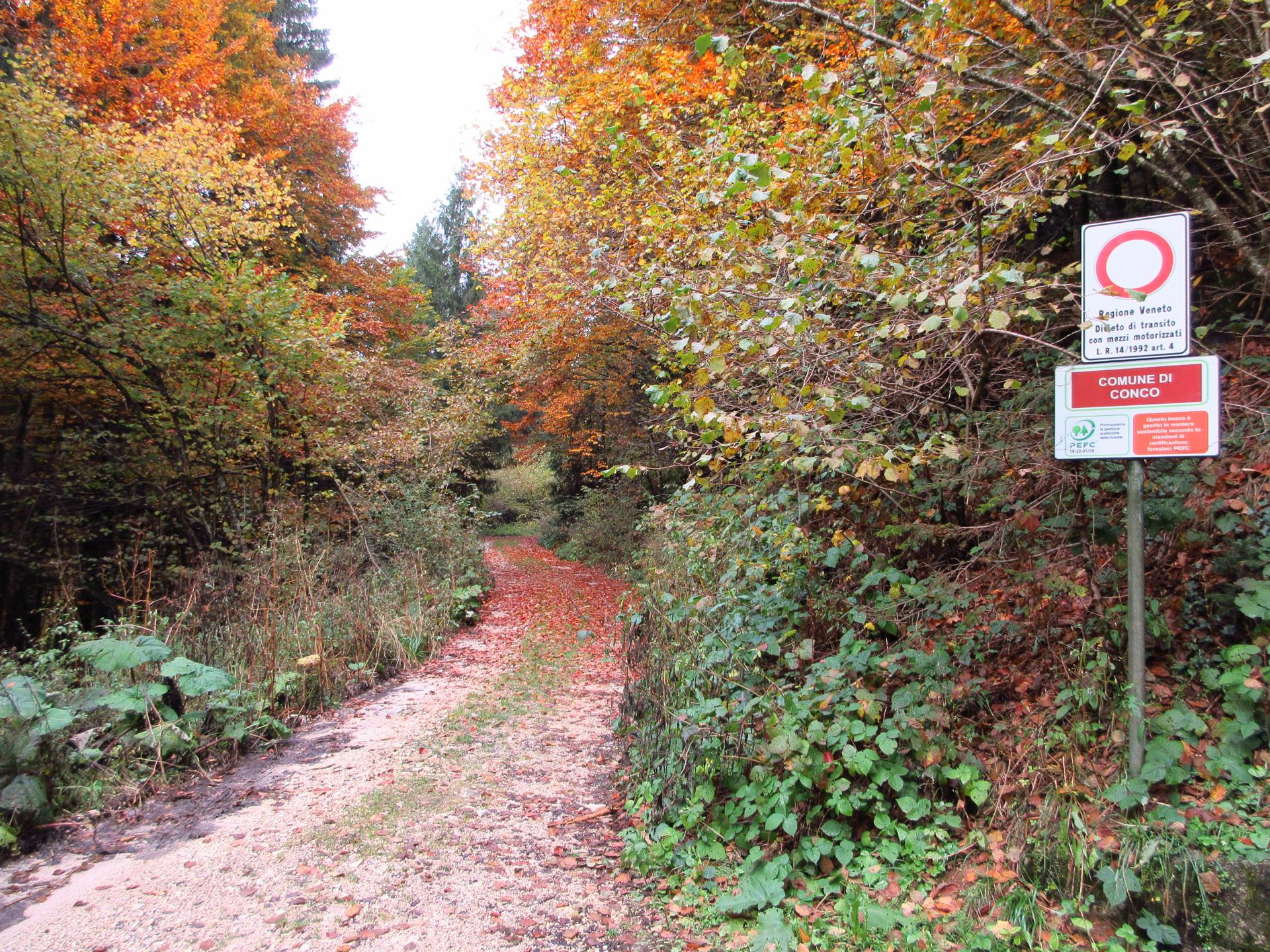 La strada termina nella provinciale che porta ad Asiago, 150 metri dal punto di partenza.