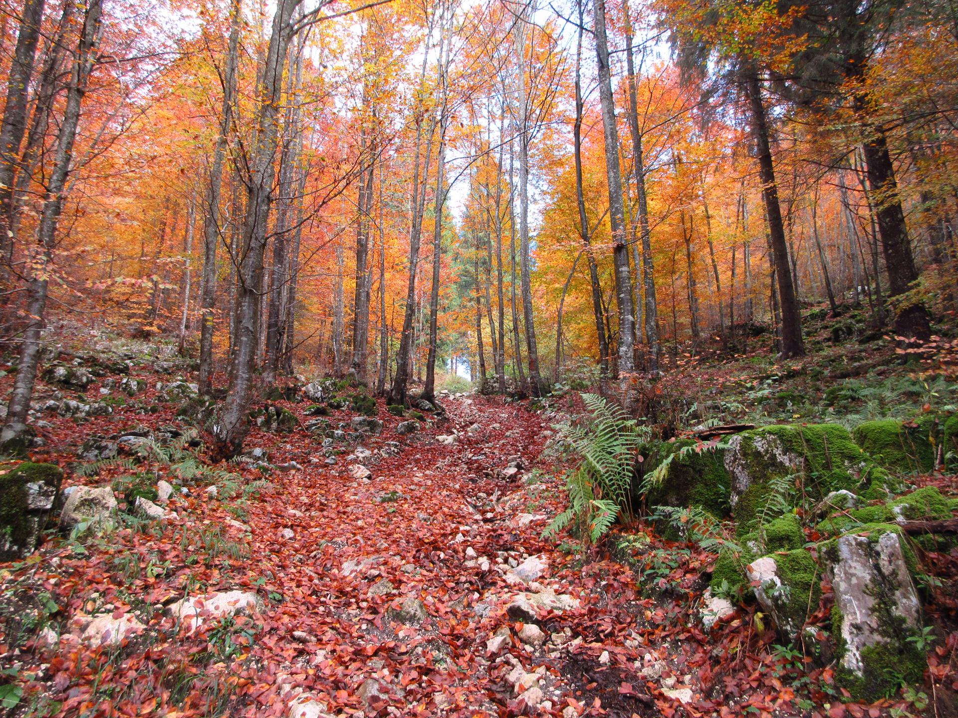 Si rientra nel bosco percorrendo la valle fino a raggiungere il Buso della Val Lunga.