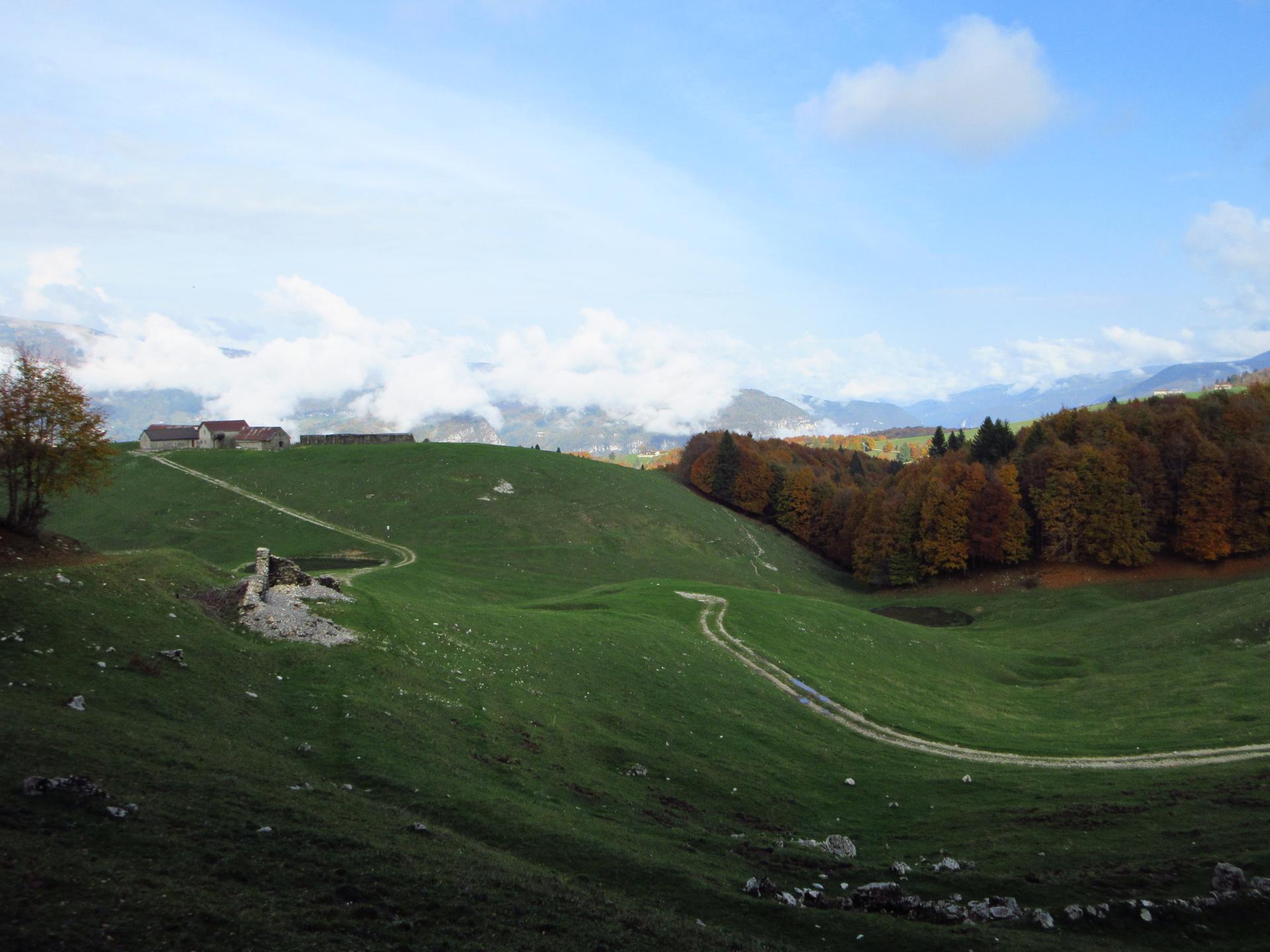 Prima di rientrare nel bosco si può godere di un bel panorama verso Col dei Remi e le Melette.