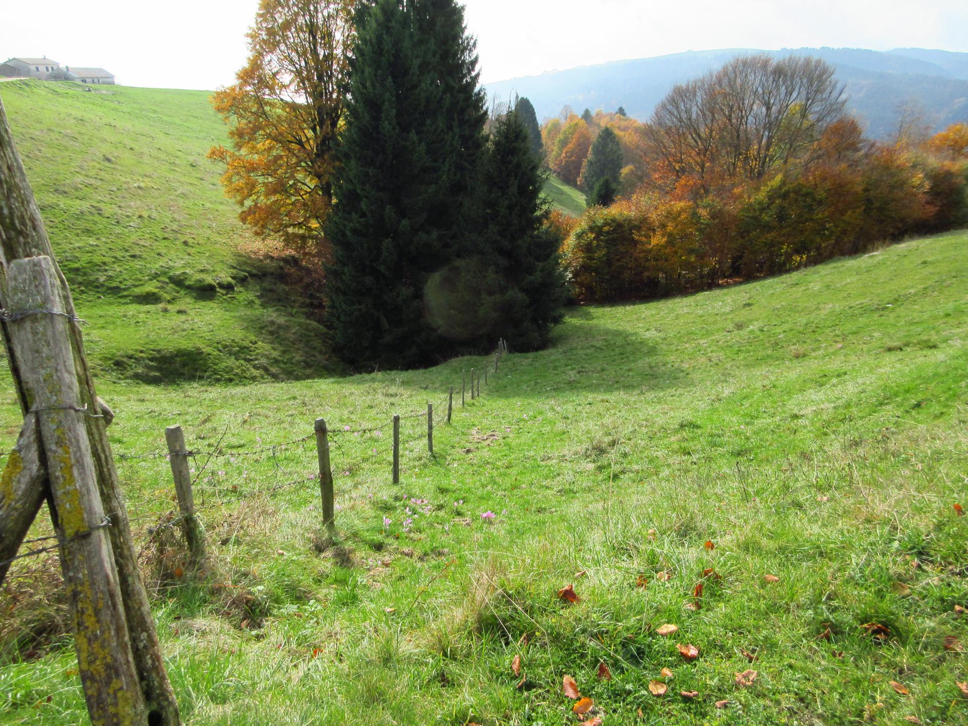 Qui non ci sono indicazioni. Bisogna scendere restando vicini al filo spinato. Noi siamo scesi rimanendo a nord del filo spinato per poi scavalcarlo. A scelta vostra. Dopo circa 100 metri ritorna visibile il sentiero.