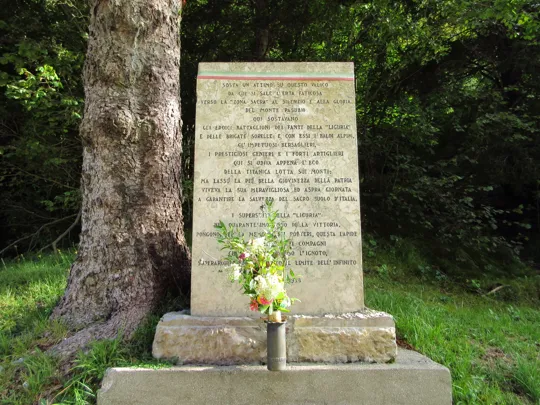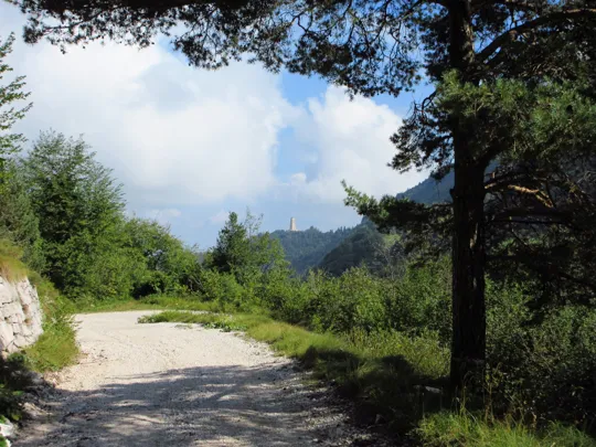 Il sentiero termina collegandosi alla strada principale dove si prosegue seguendo il tracciato della Strada degli Eroi.