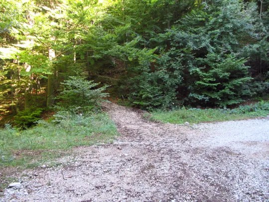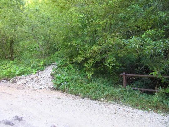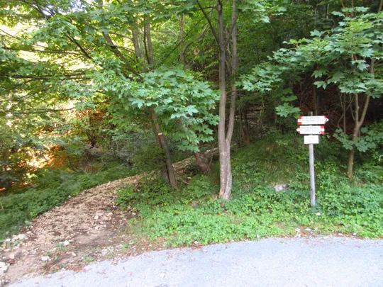 Altro tornante altra scorciatoia. Ripresa la strada e percorsa per una cinquantina di metri troviamo dopo una specie di ponticello il sentiero che prosegue a destra.