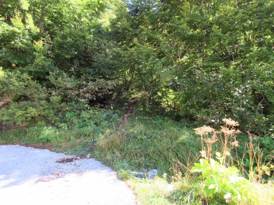 Il sentiero esce al tornante superiore per poi uscirne immediatamente.