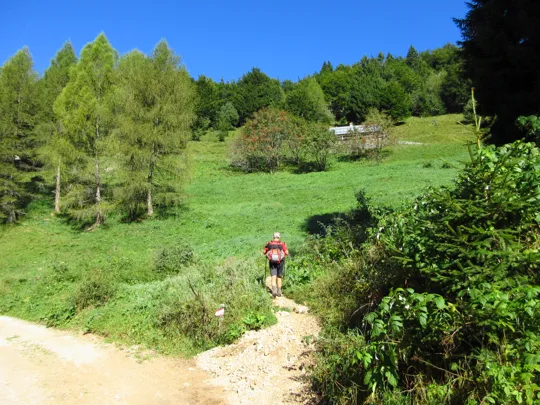 Ritroviamo ancora la strada e proseguiamo per l'E5 passando nei pressi della malga Val di Fieno.