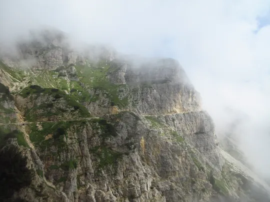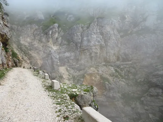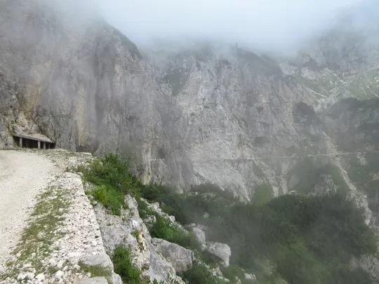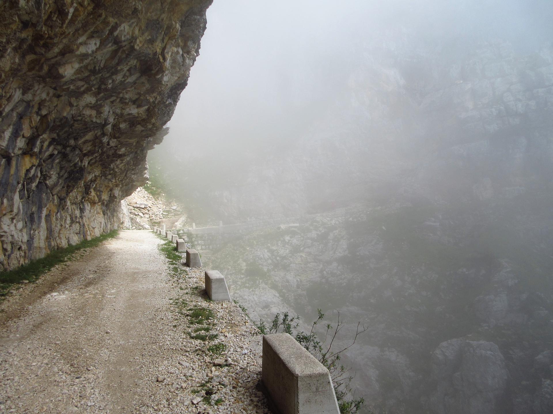 Attraversiamo altre brevi gallerie mentre le nuvole continuano a nascondere e scoprire la strada degli Eroi.