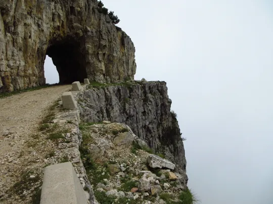 Più che una galleria potrebbe essere definito come un portale verso l'ignoto. La montagna ci mostra la sua imprevedibilità attraversando un buco su di essa.