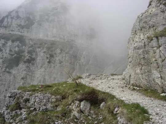 Tutto vi arrivava da Bocchette Campiglia (ove sempre restava un nostro distaccamento) e, a Bocchette, era congiunta solo dai vari rami del nostro teleforo e della strada costruita che, non essendo ancora ufficialmente aperta al transito, era percorsa più che atro dalle salmerie della compagnia.