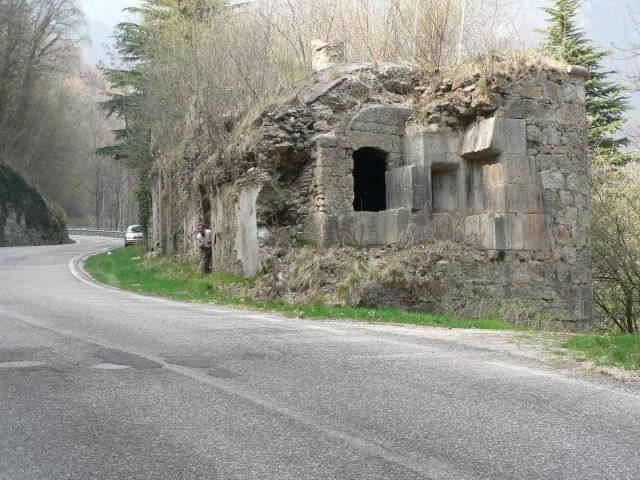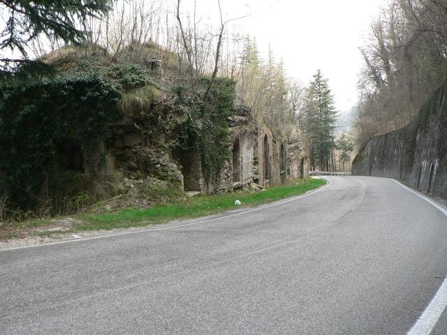 Il forte è talmente un tutt'uno con la strada che ormai ci si passa senza farci caso. Eppure, un tempo, la funzione della tagliata era quella di sbarrare proprio quella strada che portava verso i confini con l'Austria.