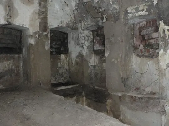 Ci sono alcuni particolari interessanti, come una piccola vasca, una scaletta in ferro che scende in una stretta fessura, numeri sopra a delle porte franate.