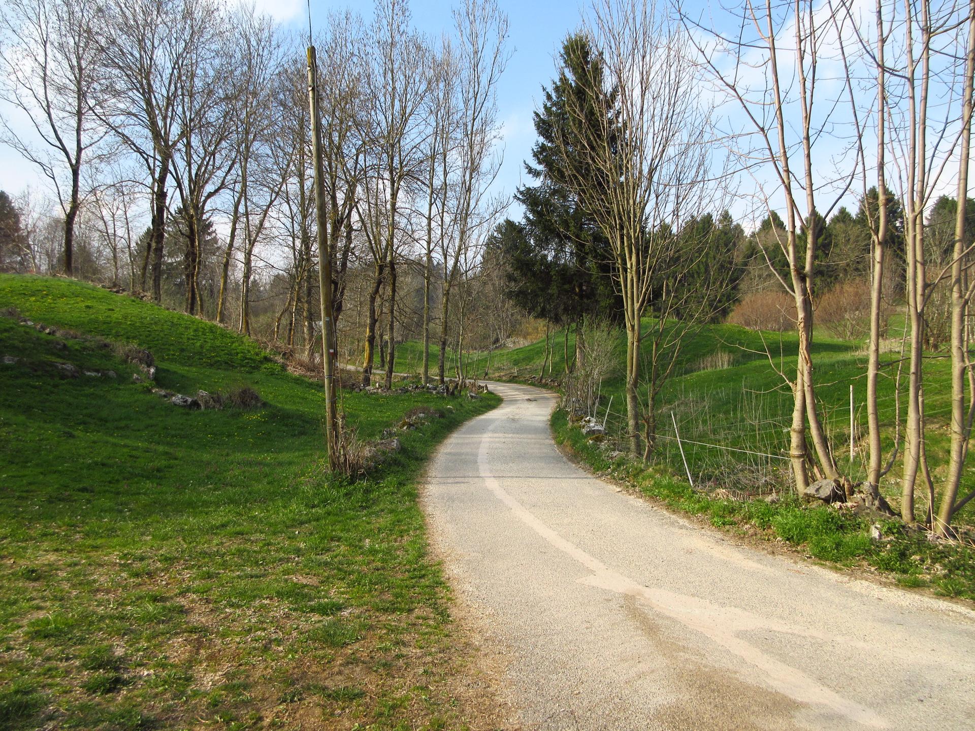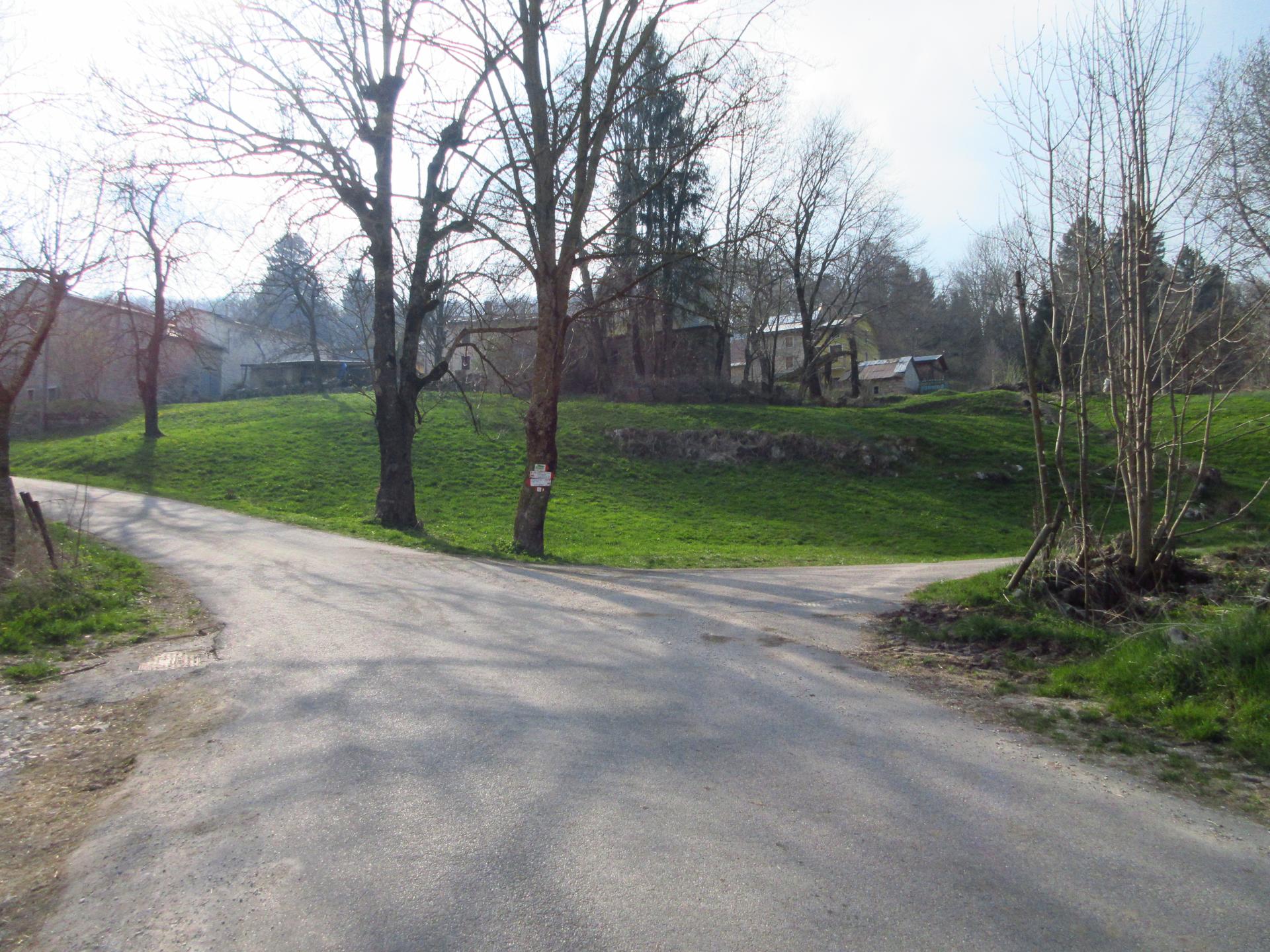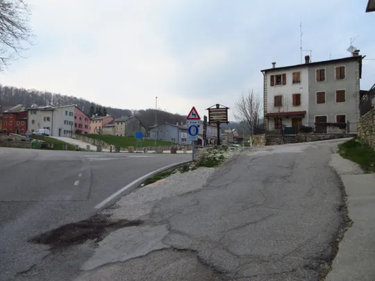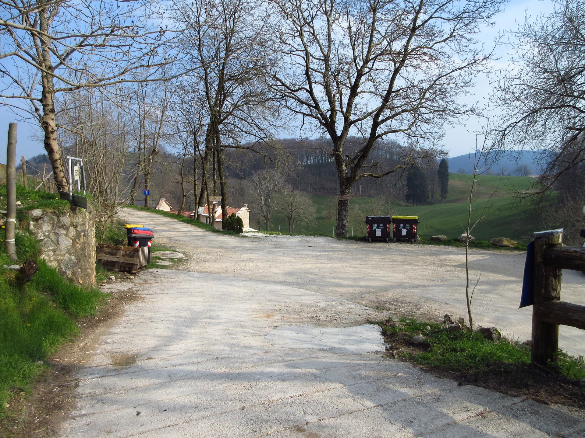 Alla croce si prosegue lungo la strada a destra. La strada si collega ad un tornante di un'altra strada ed è necessario proseguire a sinistra ancora in salita.