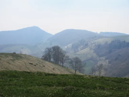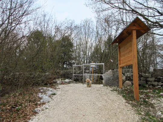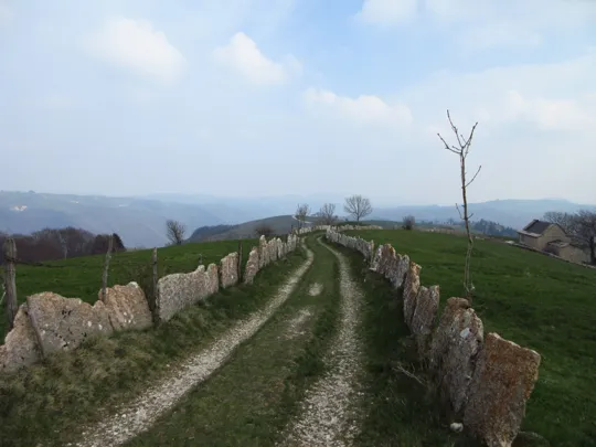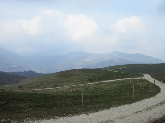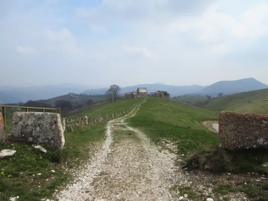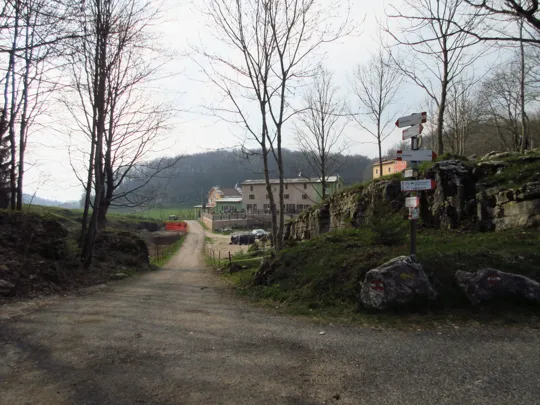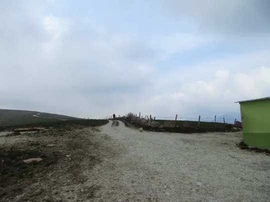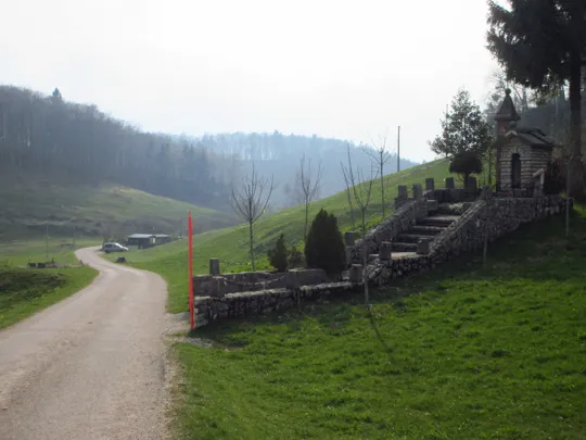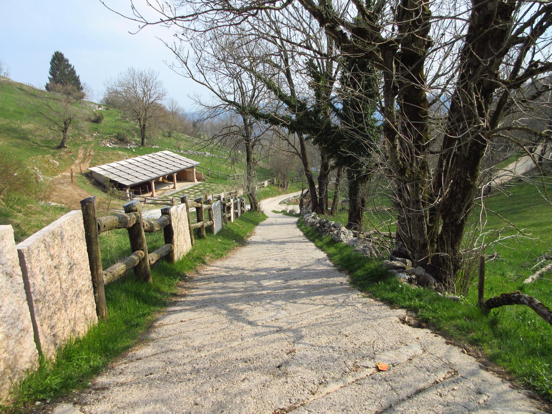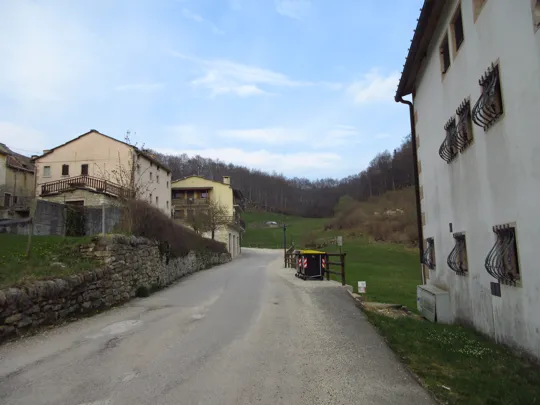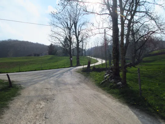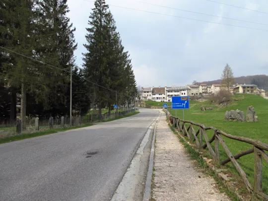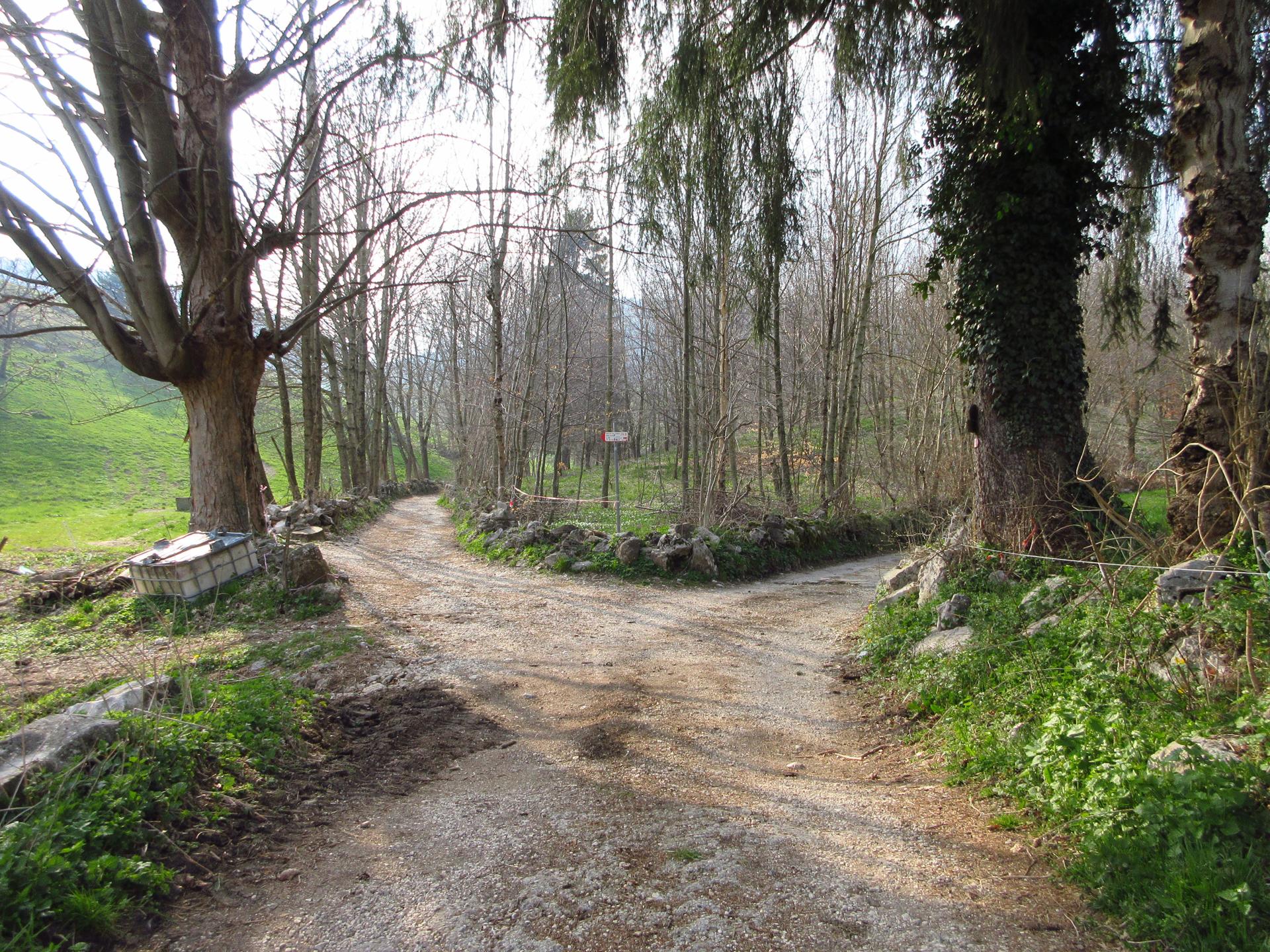 Alla croce si prosegue lungo la strada a destra. La strada si collega ad un tornante di un'altra strada ed è necessario proseguire a sinistra ancora in salita.