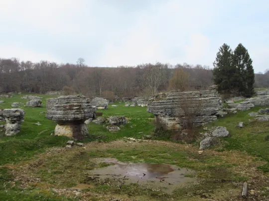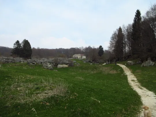 In dieci minuti si arriva nei pressi di quest'area ricoperta da massi che affiorano dal terreno, effettivamente quasi a sembrare delle sfingi.