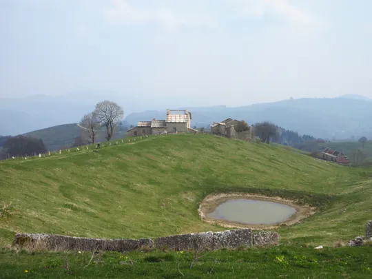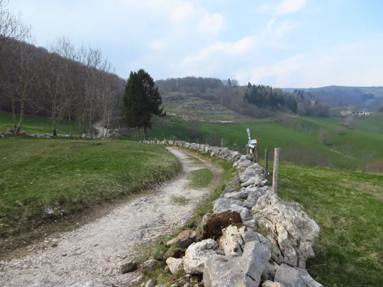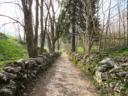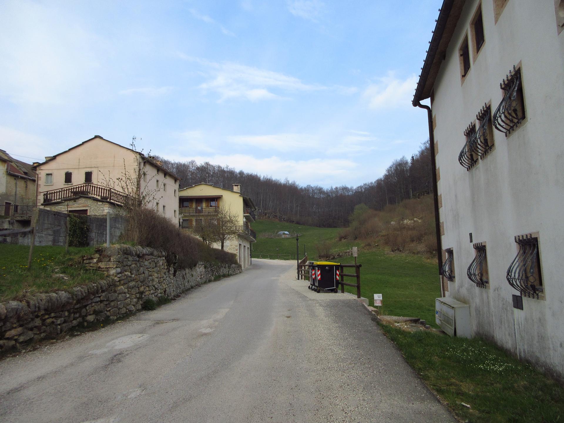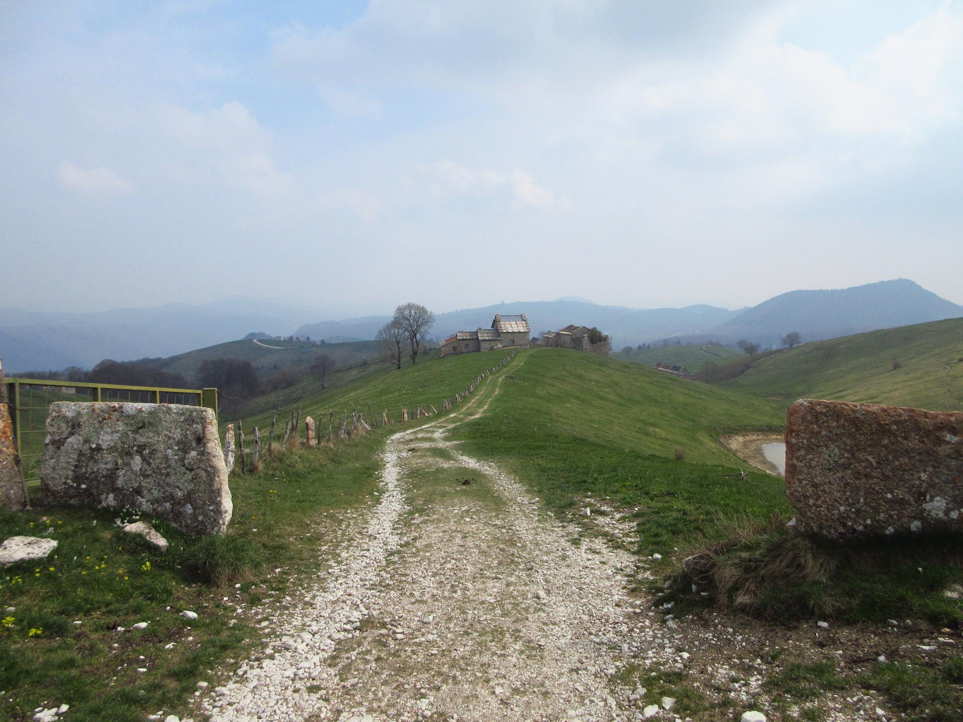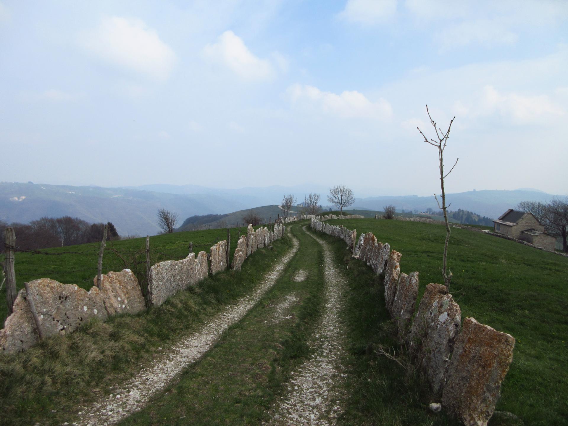 Si prosegue lungo una mulattiera fino ad arrivare ad altri edifici dove la strada si fa un po confusa. Al muretto si può rimanere sulla destra, seguendo un strada o costeggiandolo oppure andare a sinistra. Noi, sbagliando, siamo andati a destra, ma è più conveniente prendere il sentiero a sinistra.