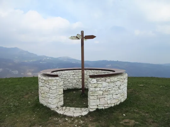 Poco prima del rifugio, sulla sinistra, un punto di osservazione ci dà delle chiare indicazioni e le distanze verso Trieste, Capo Nord, Tripoli ...