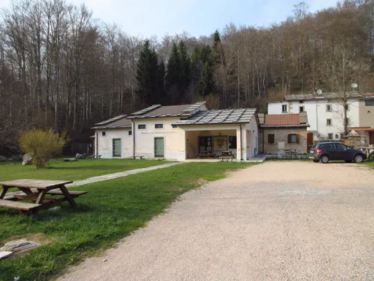 Poco prima del termine della salita la strada diventa asfaltata e si prosegue fino al parcheggio passando di fronte al museo Geopaleontologico.