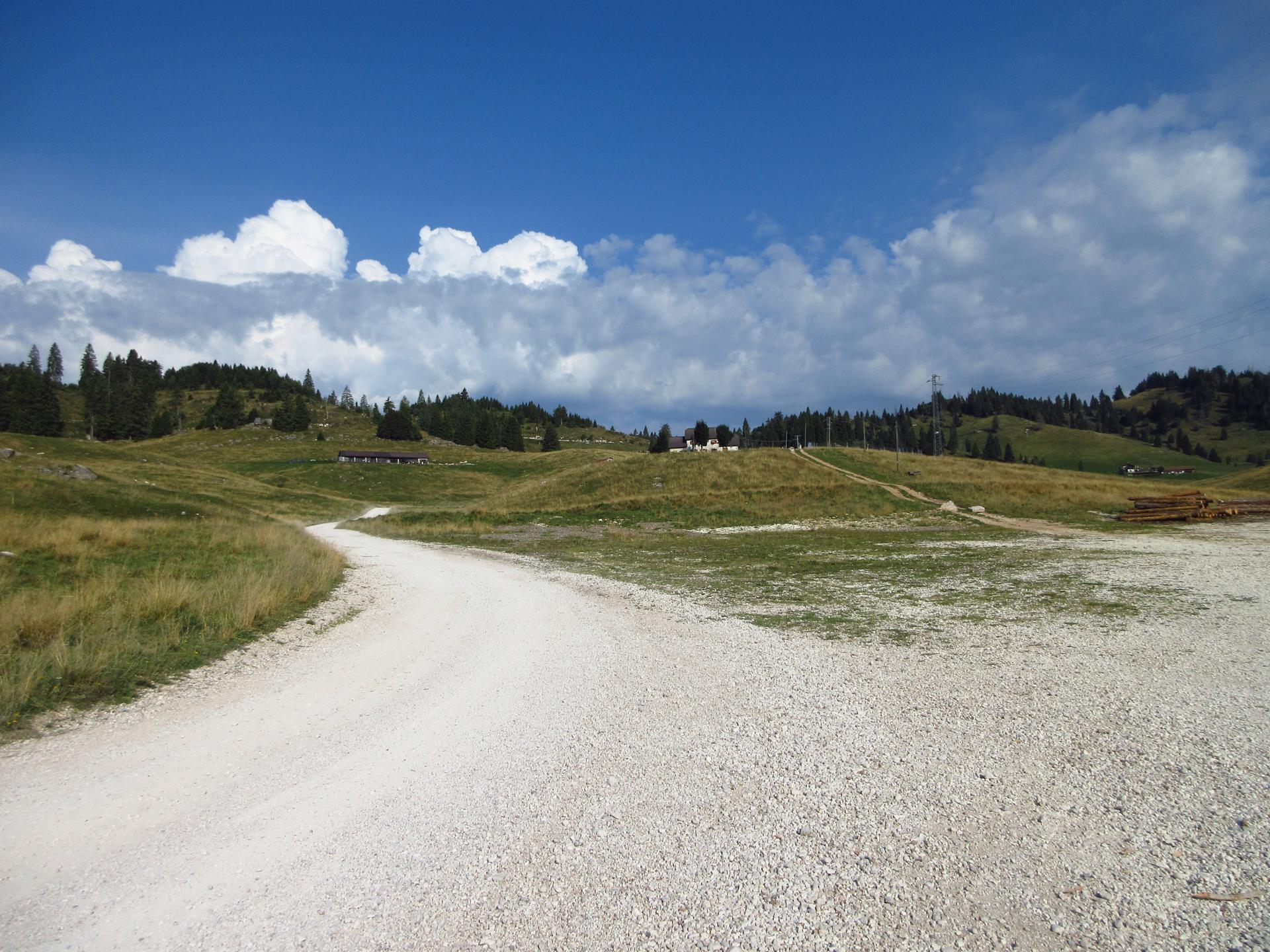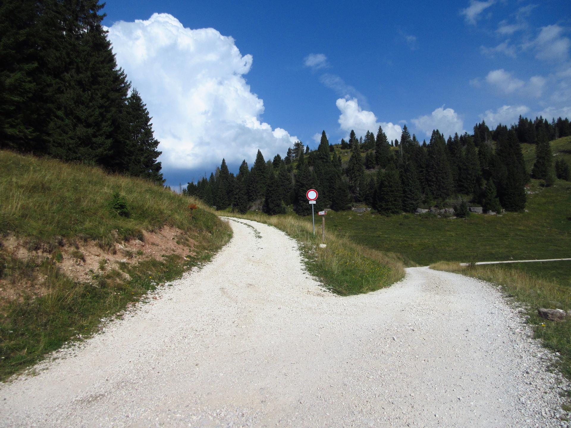 Dall'enorme parcheggio si procede in salita a nord-ovest verso Malga II° Lotto.