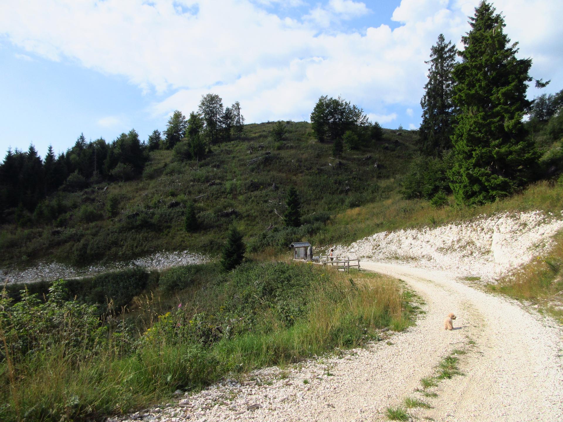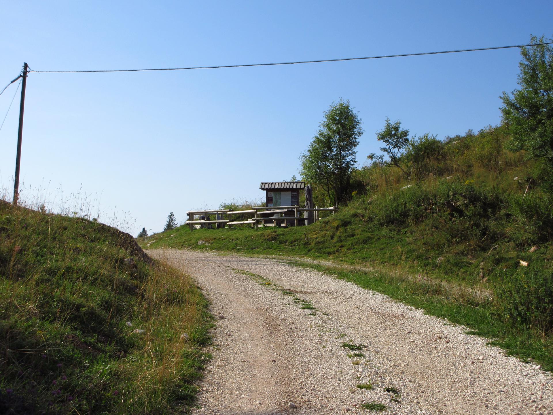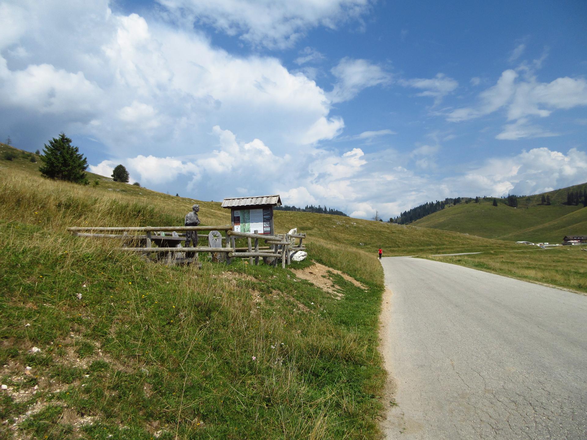 Proseguendo il percorso la strada diventa erbosa fino a congiungersi con la strada asfaltata che dal rifugio Valmaron porta verso il rifugio Barricata. Prendendo la strada in salita si raggiunge l'ultima tabella.