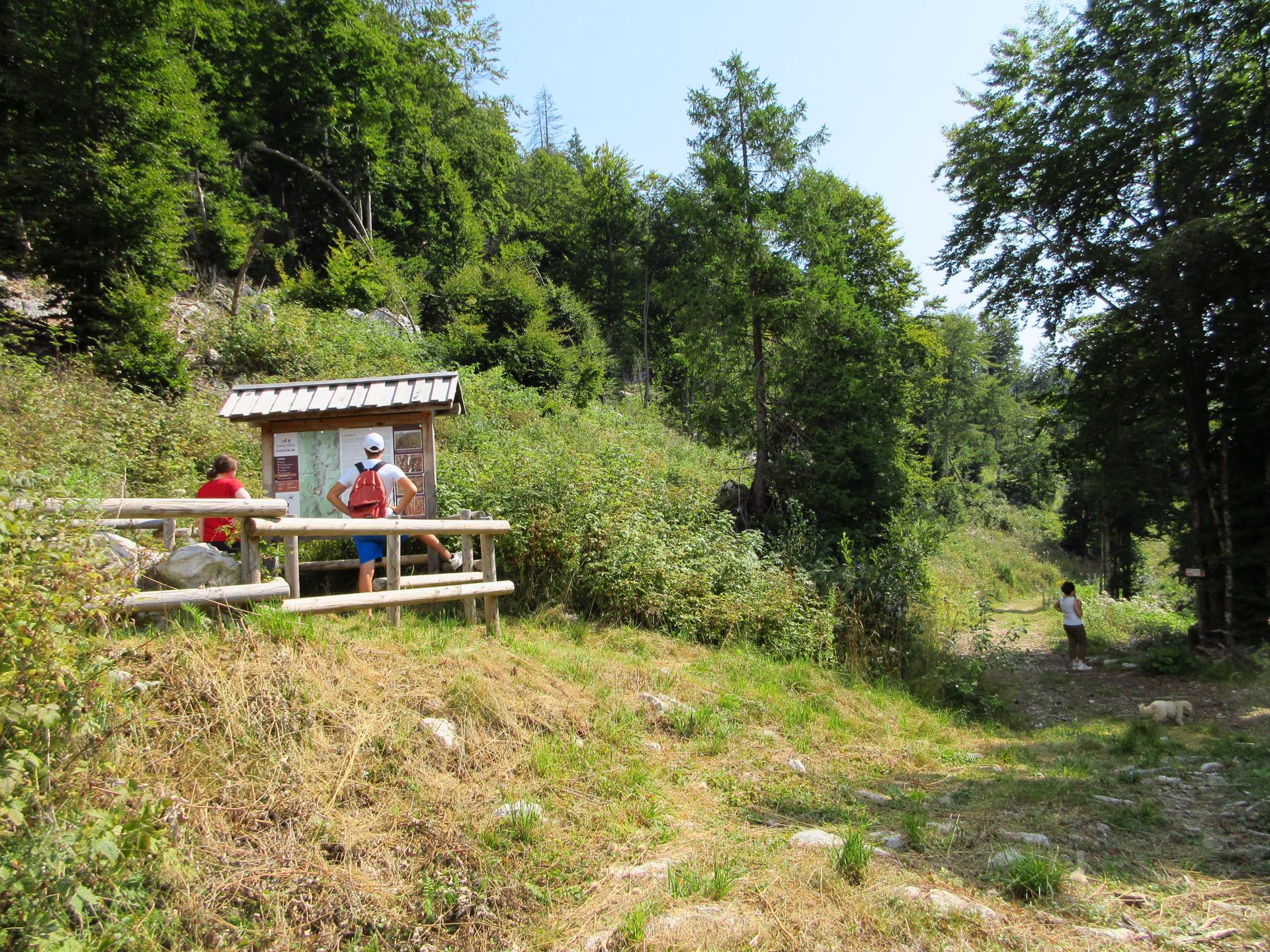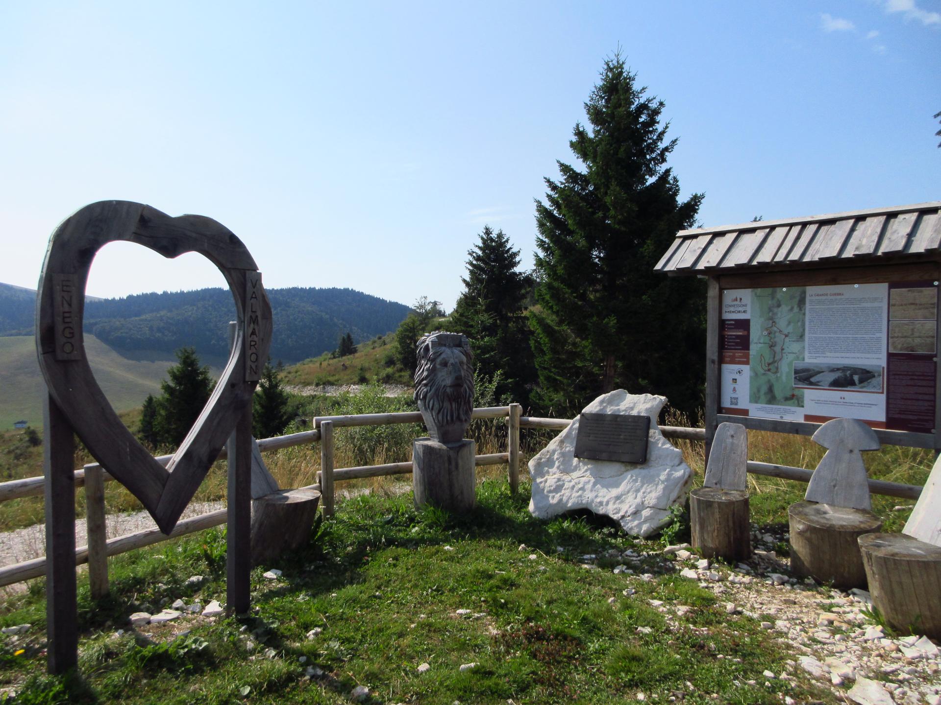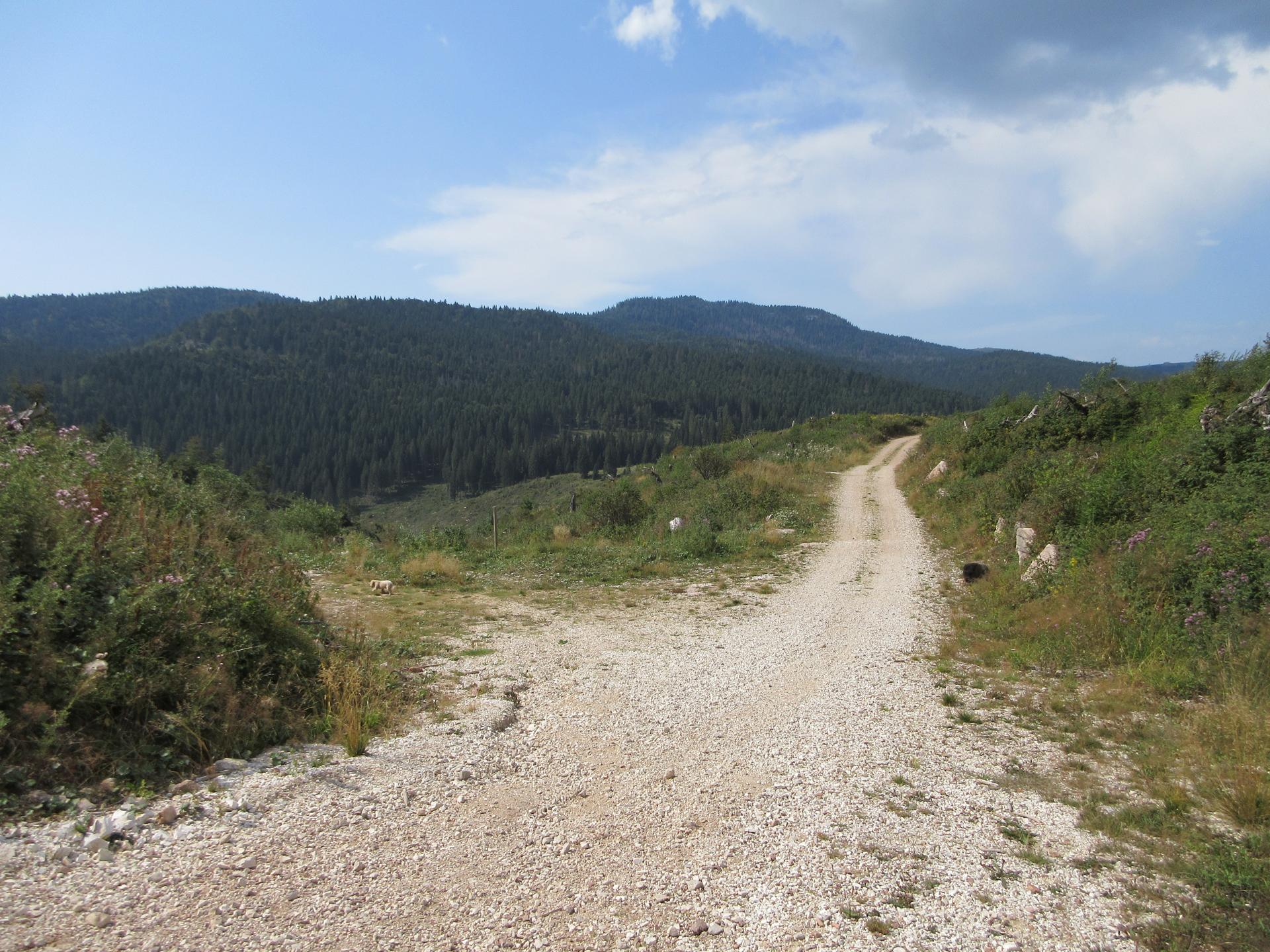 Proseguendo il percorso la strada diventa erbosa fino a congiungersi con la strada asfaltata che dal rifugio Valmaron porta verso il rifugio Barricata. Prendendo la strada in salita si raggiunge l'ultima tabella.