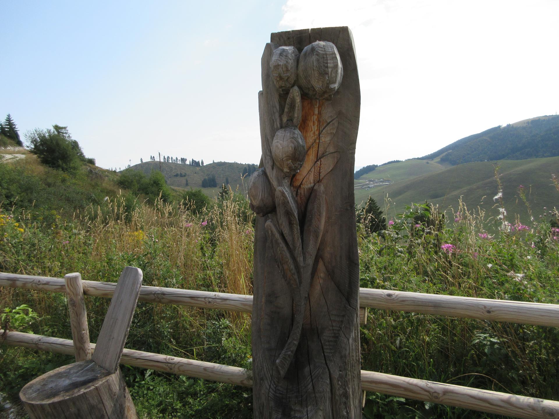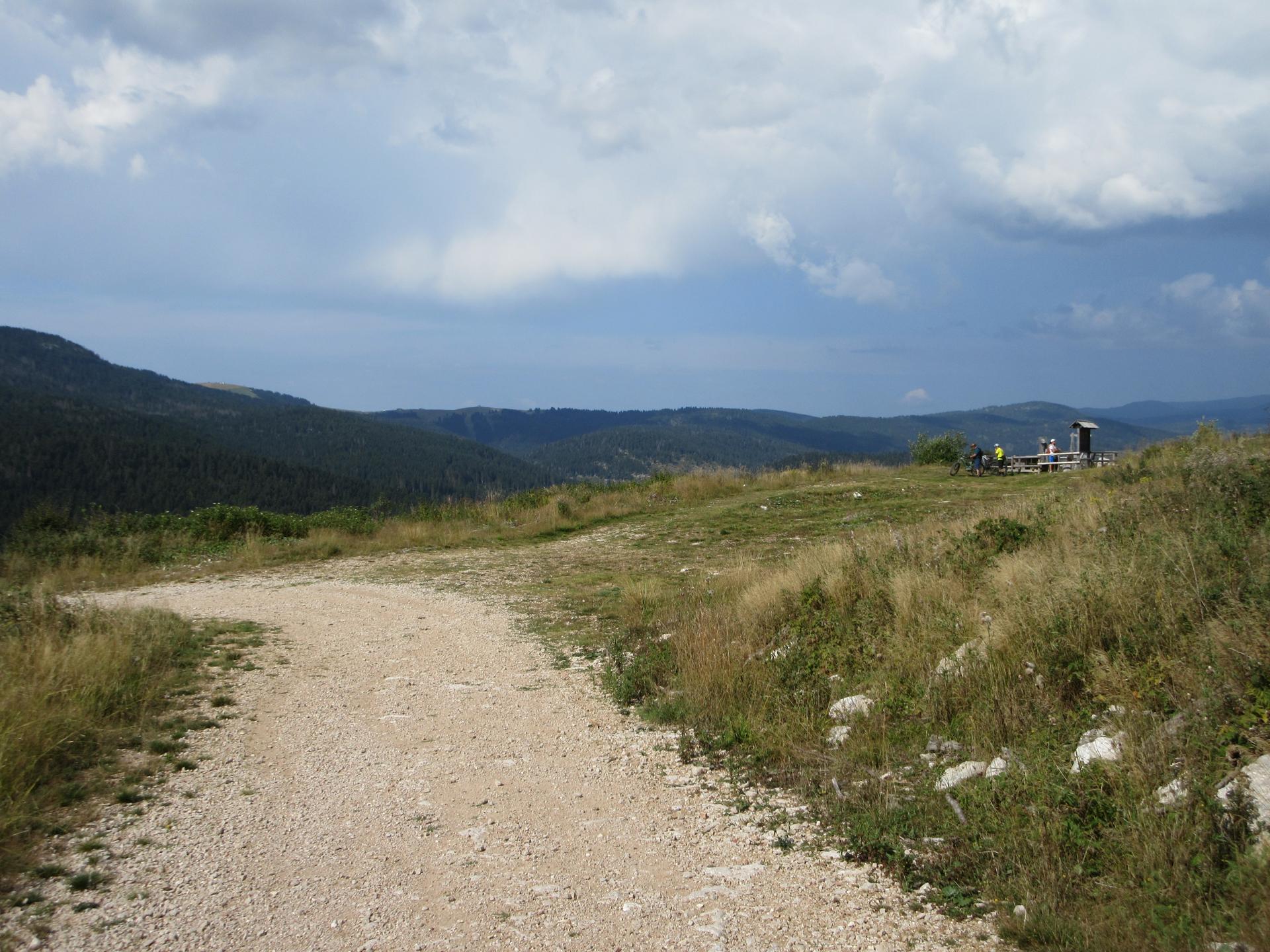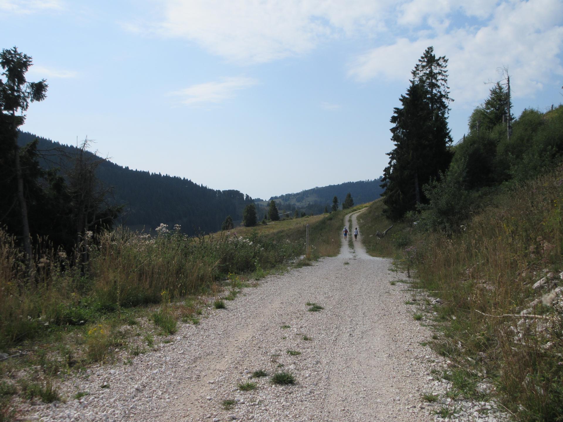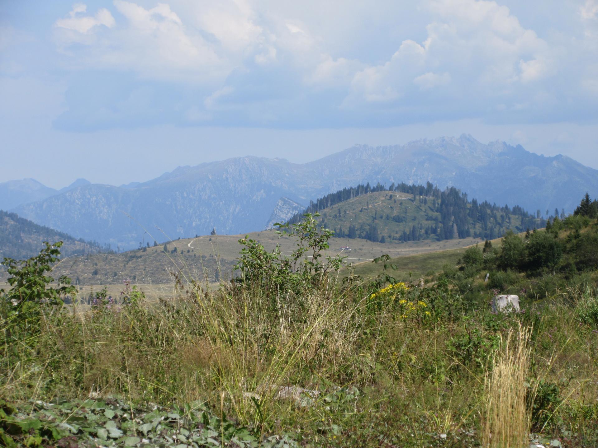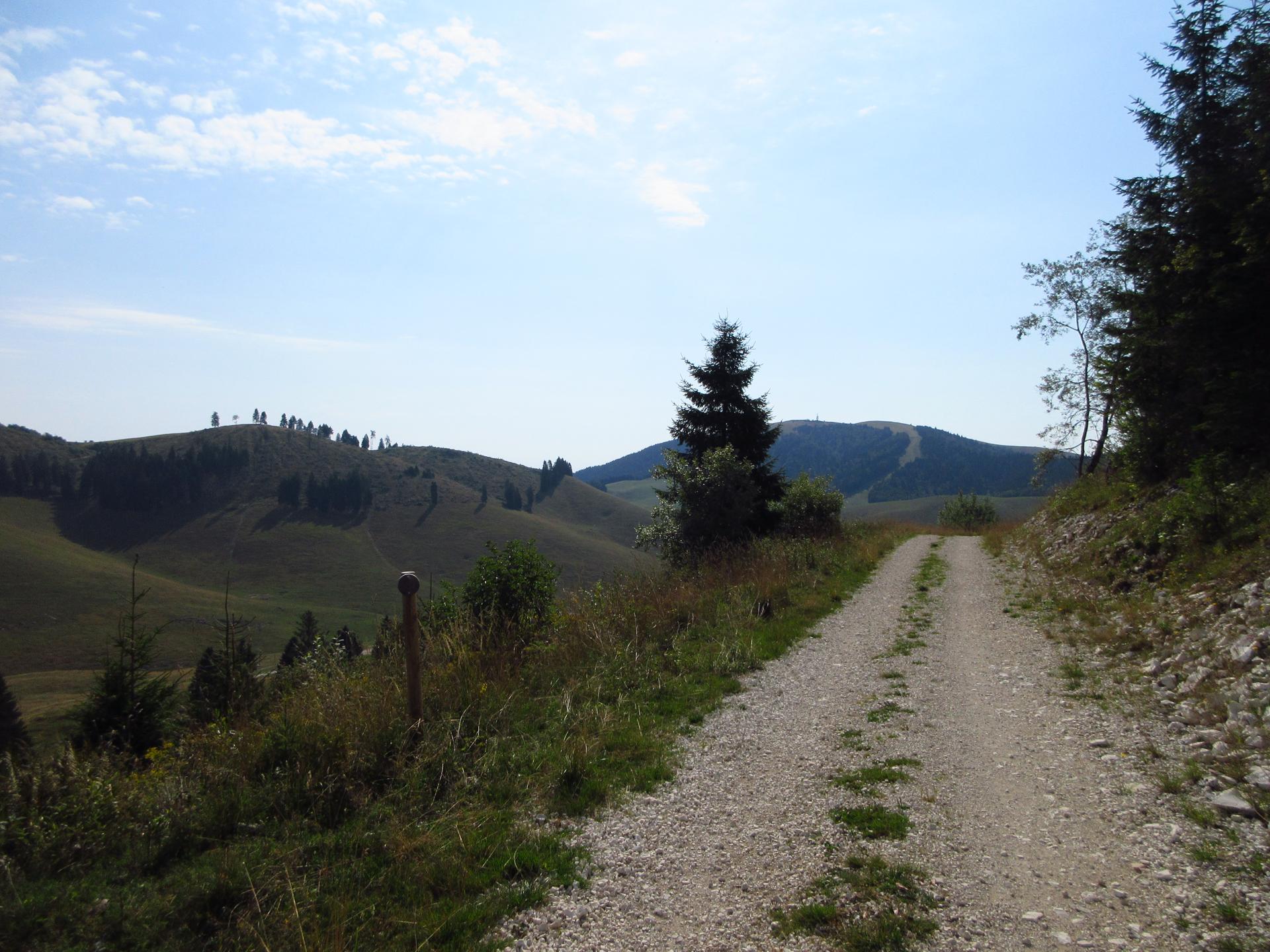 Procedendo tra leggere salite e discese si arriva ad un tornante dove si apre un bellissimo panorama sulla piana di Marcesina e sulle montagne a nord dell'altopiano e alla quarta tabella.