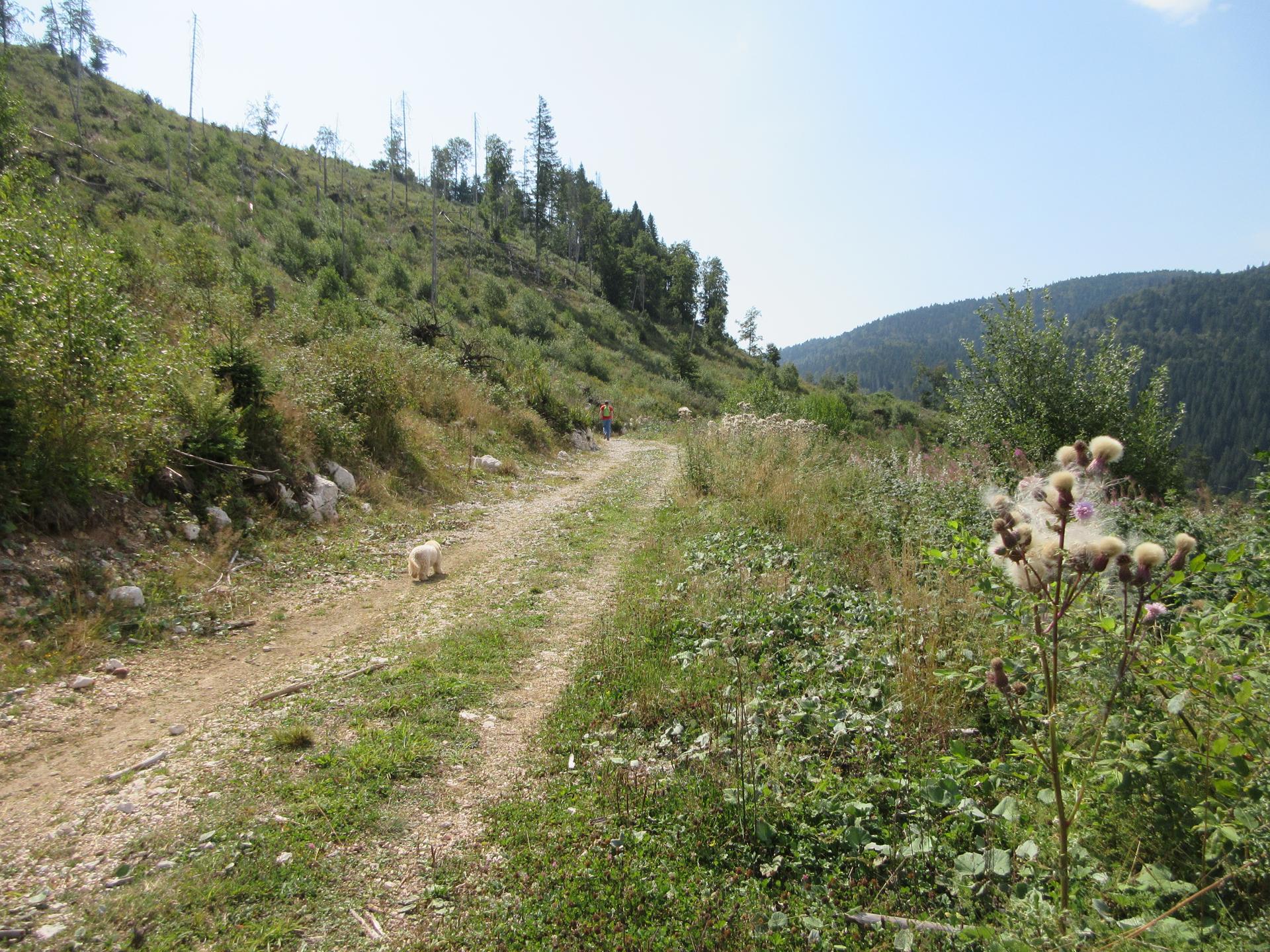 Lungo il cammino si può chiaramente notare che prima di Vaia la strada doveva essere all'ombra di abeti che adesso non ci sono più ... Quindi il percorso è tutto esposto al sole!