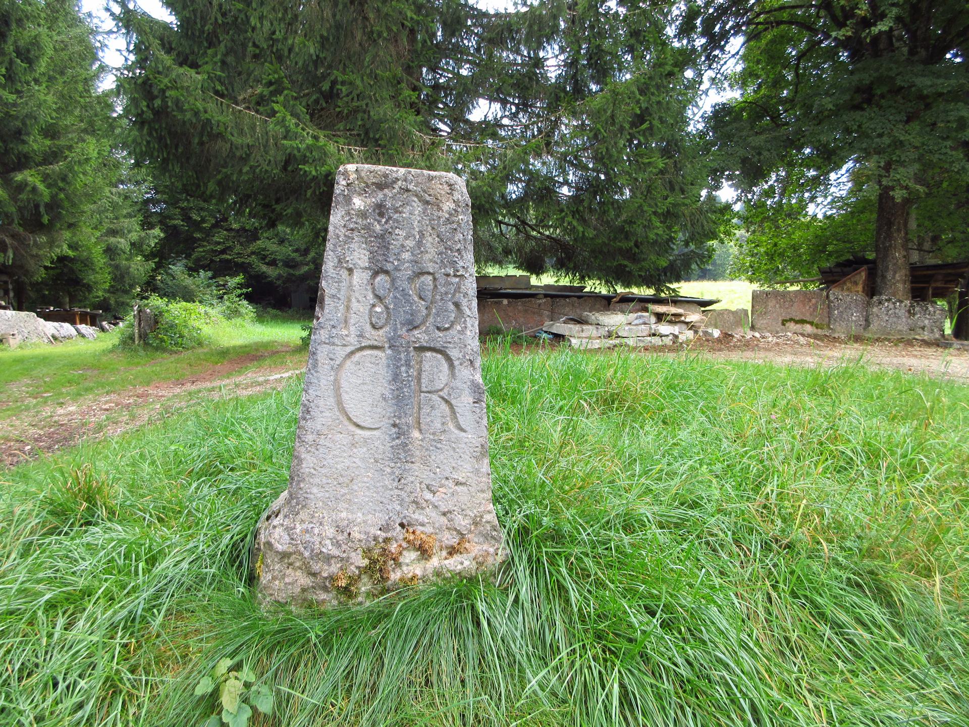 Una strana pietra riporta 1893 CR e subito dopo entriamo nel comune di Cogollo del Cengio.
