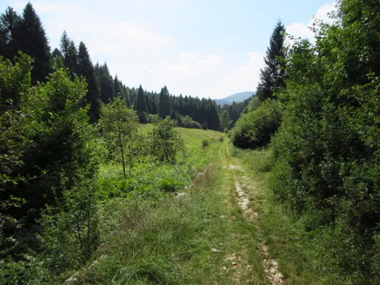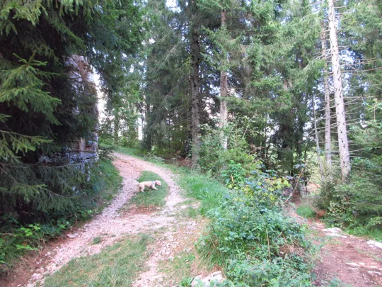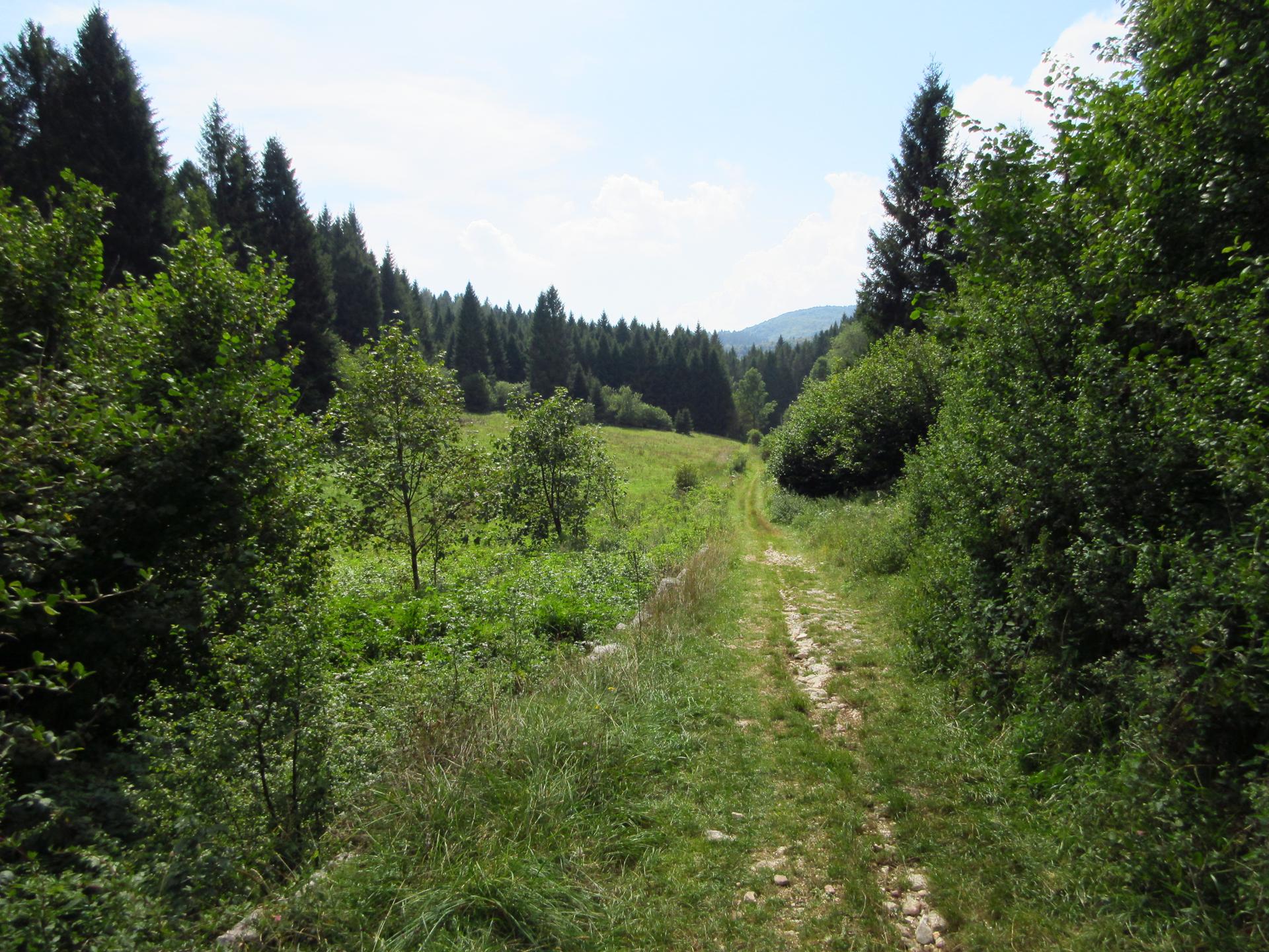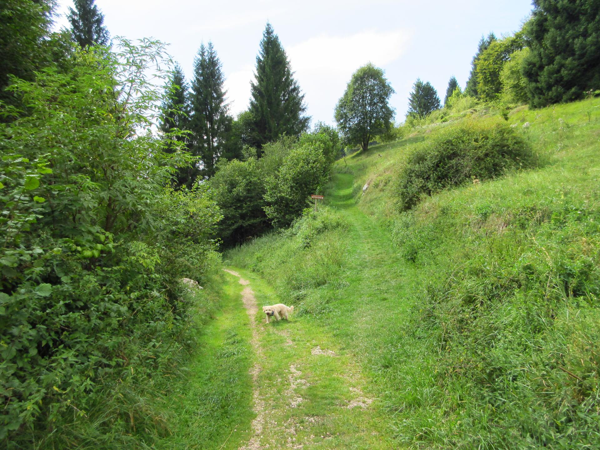 Si esce dalla strada seguendo l'indicazione per la trincea ed uscendo rapidamente dal bosco.