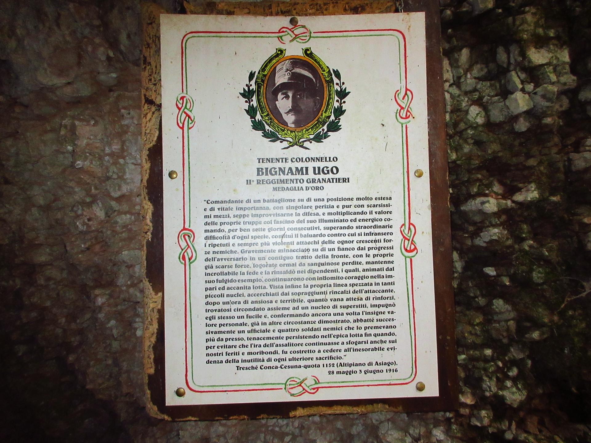 Comandante del 1° Battaglione del 2° Reggimento della Brigata dei Granatieri di Sardegna, il colonnello Ugo Bignami con i suoi uomini assunse la difesa del poggio di quota 1152, un'altura situata a sud ovest dell'abitato di Cesuna. Dal 31 maggio al 2 giugno 1916 nonostante la crescente intensità dei bombardamenti austriaci i granatieri riuscirono, pur tra notevolissime difficoltà, a conservare le proprie posizioni. Il giorno 3 dopo un intenso tiro di distruzione, con il concorso dei medi e grossi calibri, le fanterie austroungariche riuscirono a rompere le difese italiane portandosi fin sul monte Busibollo alle spalle dei Granatieri. In breve tempo i reparti italiani si trovarono accerchiati. Lo stesso coll. Bignami, unendosi ai difensori, imbracciò personalmente un fucile uccidendo un ufficiale ed altri quattro soldati austriaci prima di cadere prigioniero.