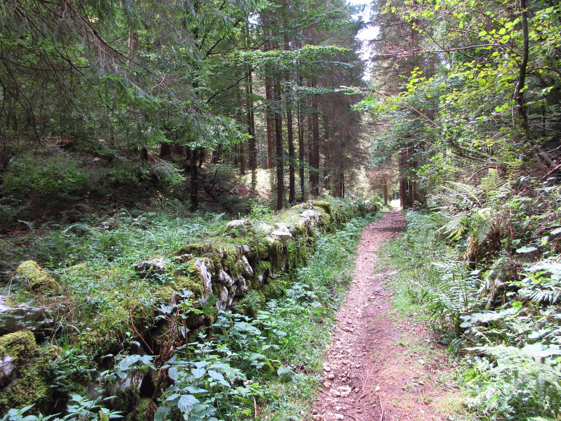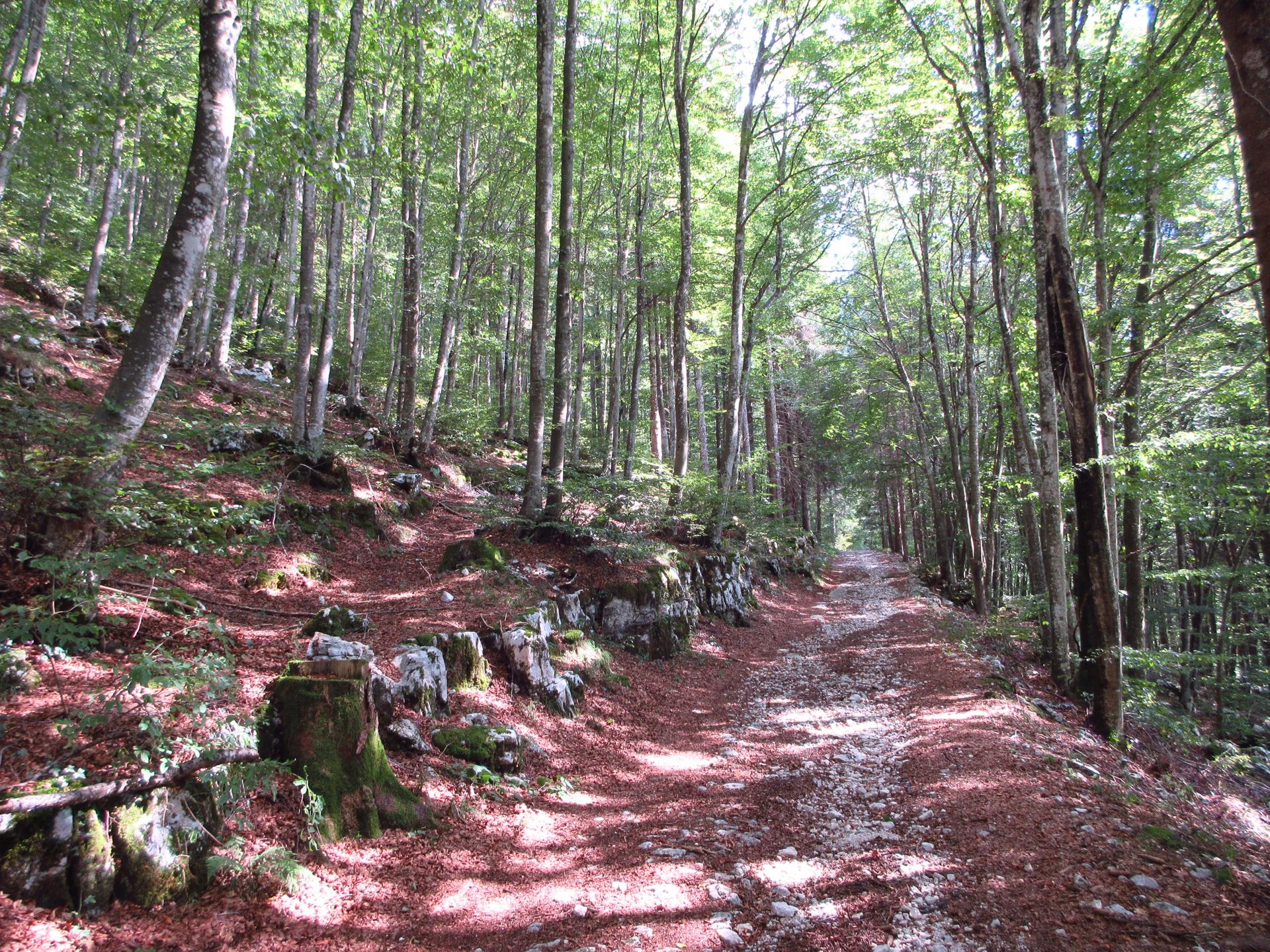 Dopo una prima radura si rientra nel bosco. Si notano alcuni muretti a secco e diversi ricoveri in caverna.