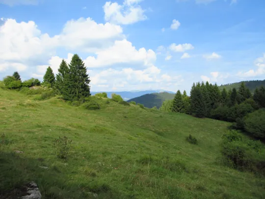Il sentiero che ci riporta a Cesuna ha degli scorci piacevoli sul Kubelek e sull'altopiano.